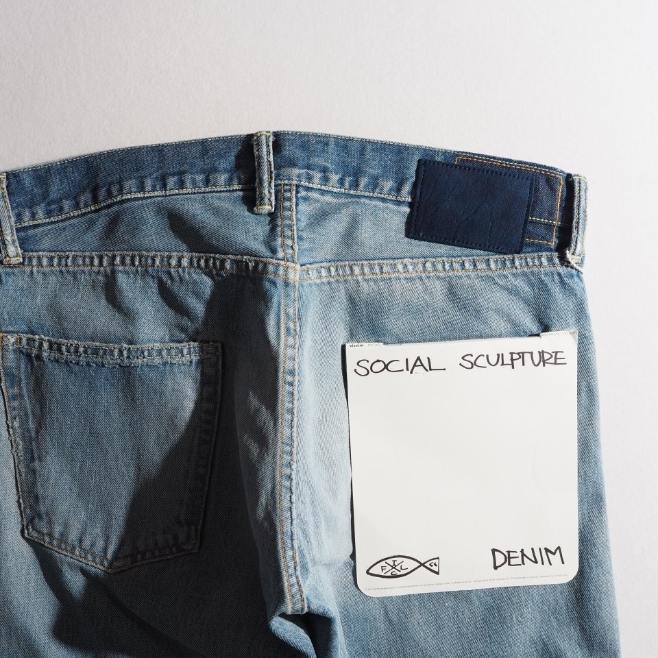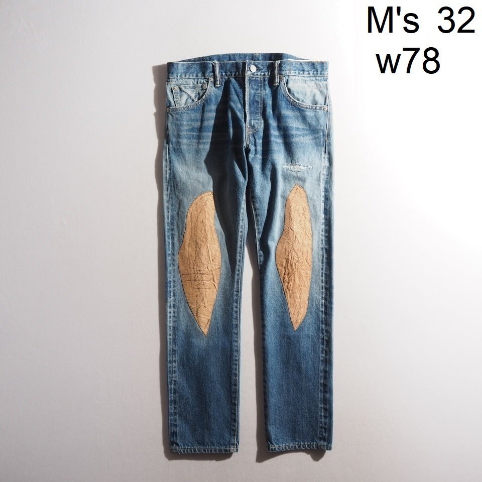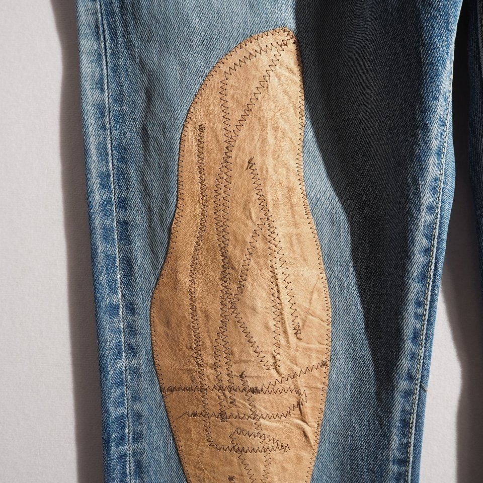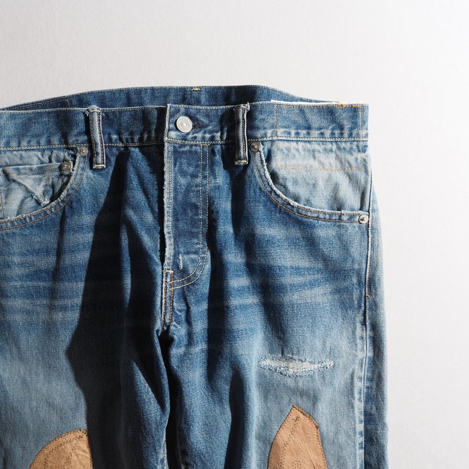 20AW SOCIAL SCULPTURE 10 DAMAGED-23 ダメージ加工 レザーパッチ デニムパンツ 32/w78