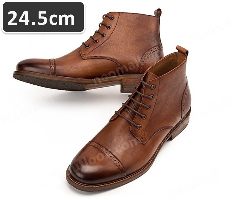 送料込☆ 本革 牛革 メンズ ショートブーツ ブラウン サイズ 24.5cm 革靴 靴 カジュアル 屈曲性 通勤 軽量 インポート品【n051】