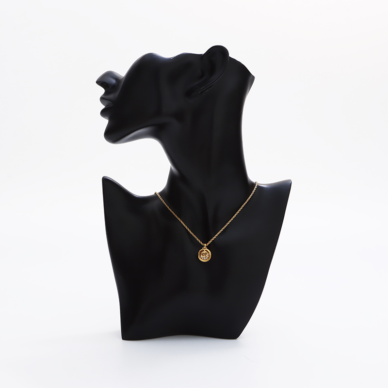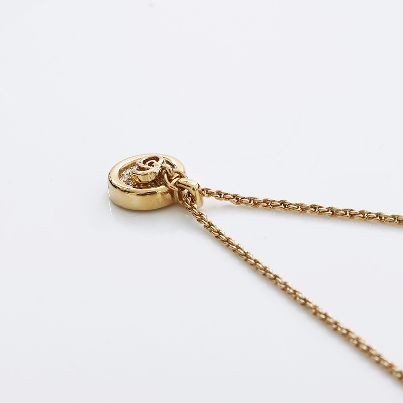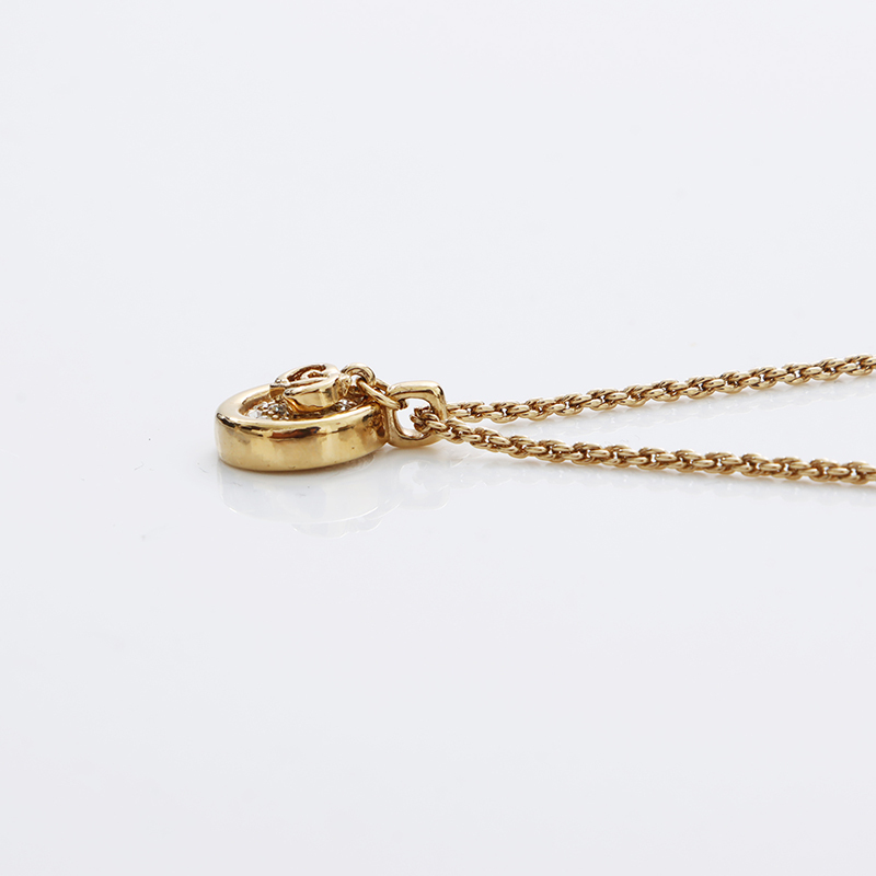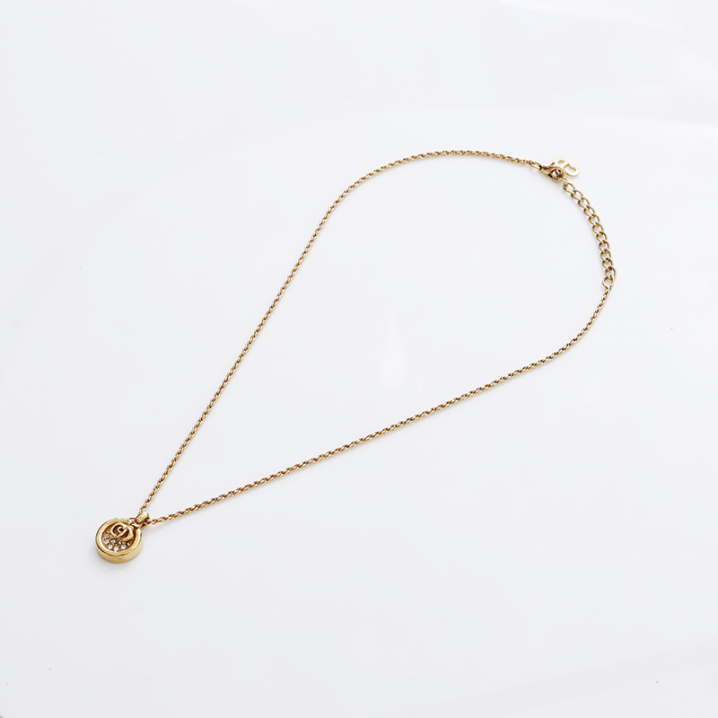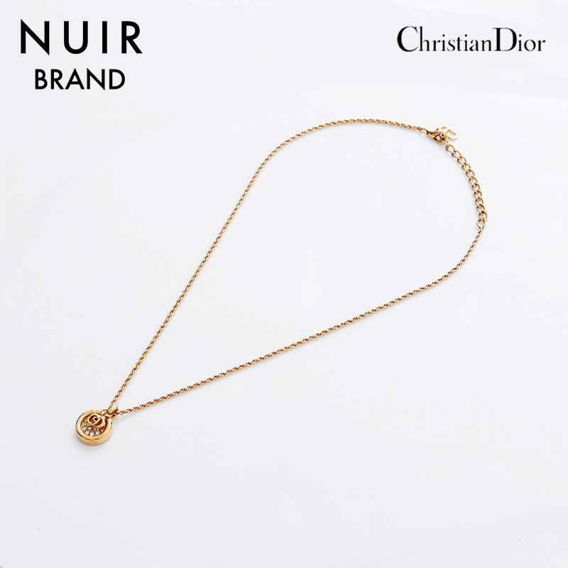 極美品 クリスチャンディオール Christian Dior ラインストーン サークル CDロゴ ネックレス ゴールド WS9073