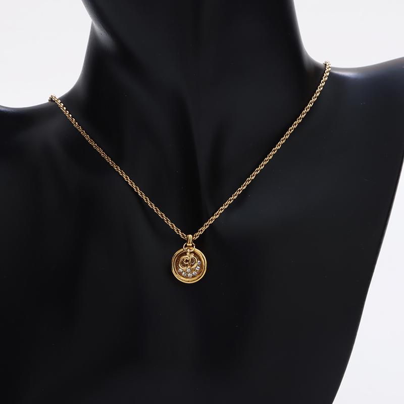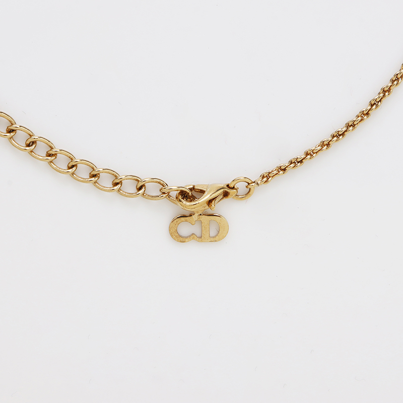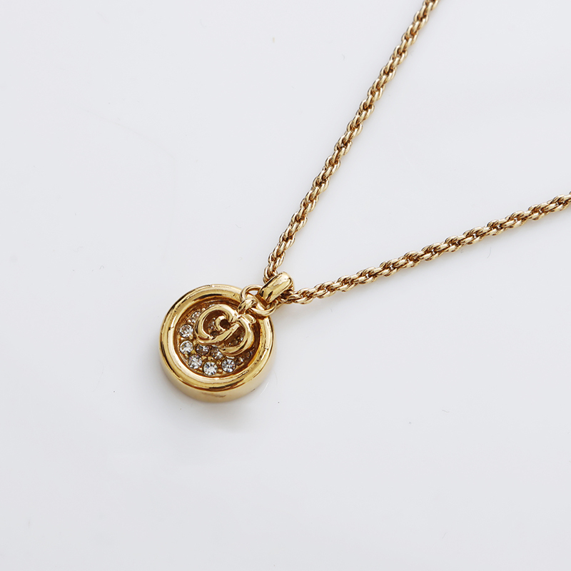 極美品 Christian Dior ラインストーン サークル CDロゴ ネックレス ゴールド