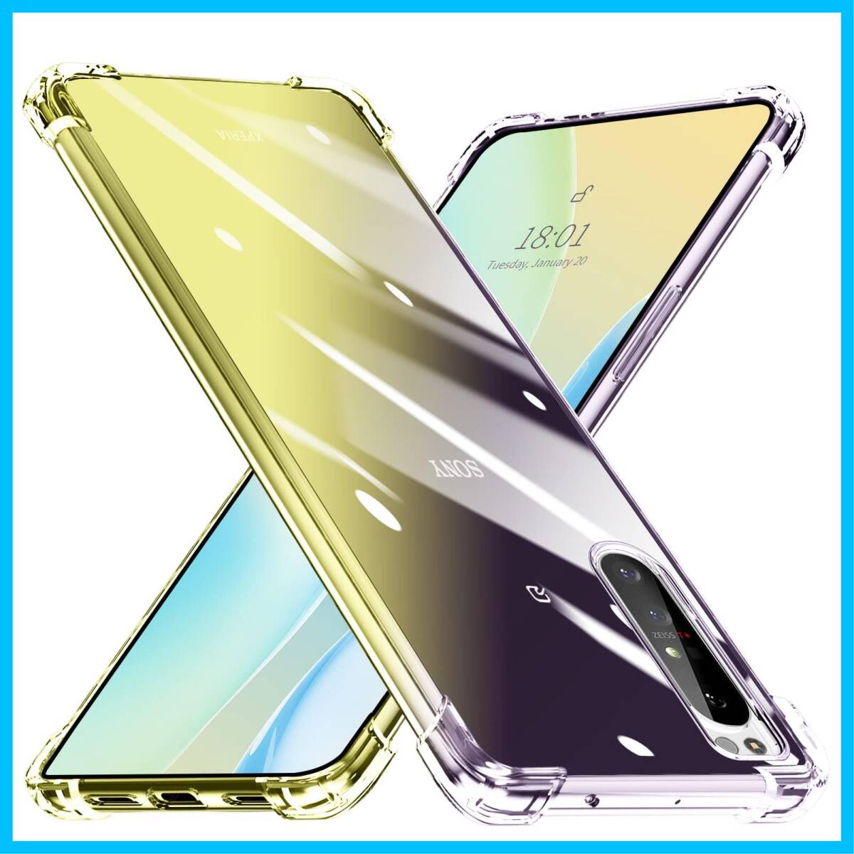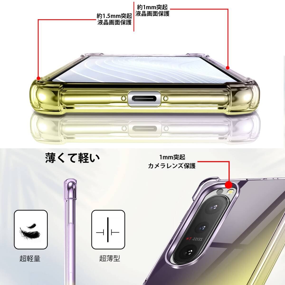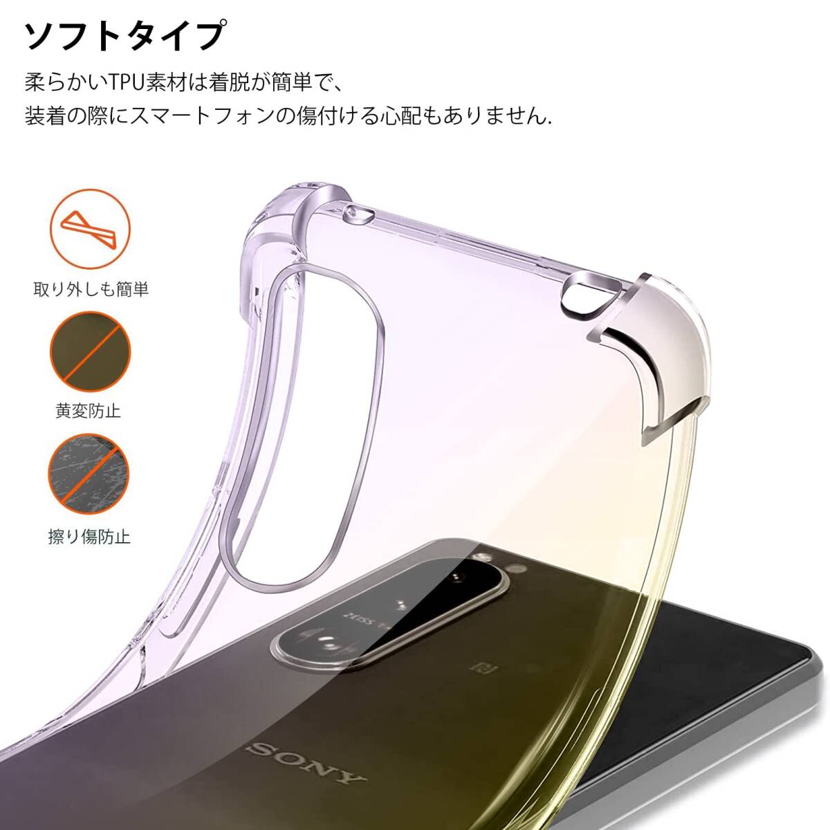 Xperia 1 III ケース クリア 透明 TPU ソフト SO-51B SOG03 ケース 耐衝撃 軽薄 全面保護 黄ばみなし グラデーション レンズ保護 傷防止 滑り防止 エクスペリア1 III スマホケース ブラック+ゴールド SJ76.96