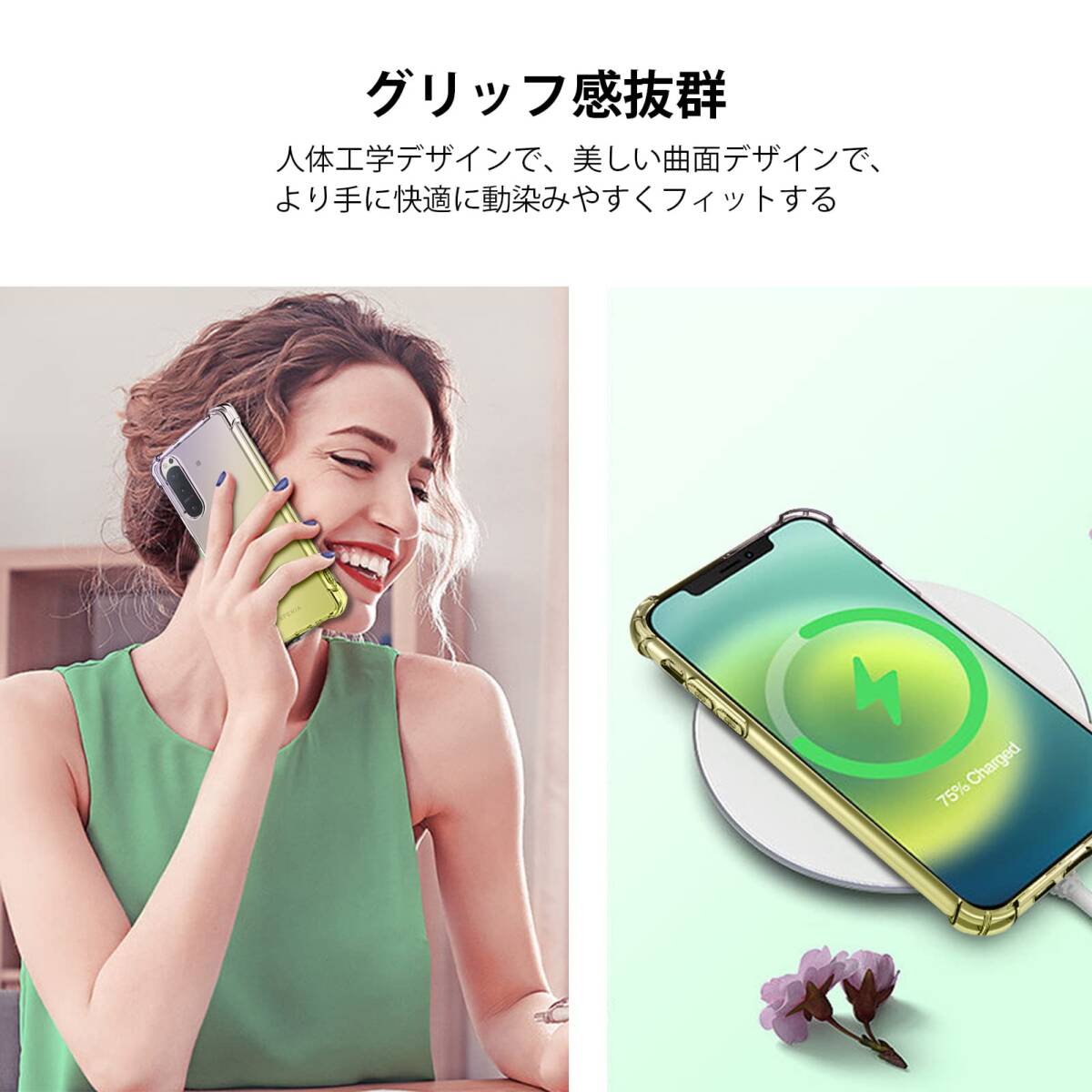 【TPU材質で優れた耐久性】適度な硬さと弾力性をあわせ持つTPUを採用し、衝撃に強く耐久性に優れ、落下や振動、衝突からスマートフォンを保護してくれます。TPUは防水と耐侵食で、水や油分に濡れてもスマホケースへの損傷が有りません。カメラレンズと液晶画面を効果的に保護するために、前面と背面をデバイスより高く設計し、前面と背面を高くすることで携帯を保護し、磨耗や擦り傷を防ぎます。本ケースの角には落下時の衝撃を吸収するエアポケットを備えており、万が一スマホを落としてしまった場合でも、落下時のダメージを最小限に抑えることが可能となっており。