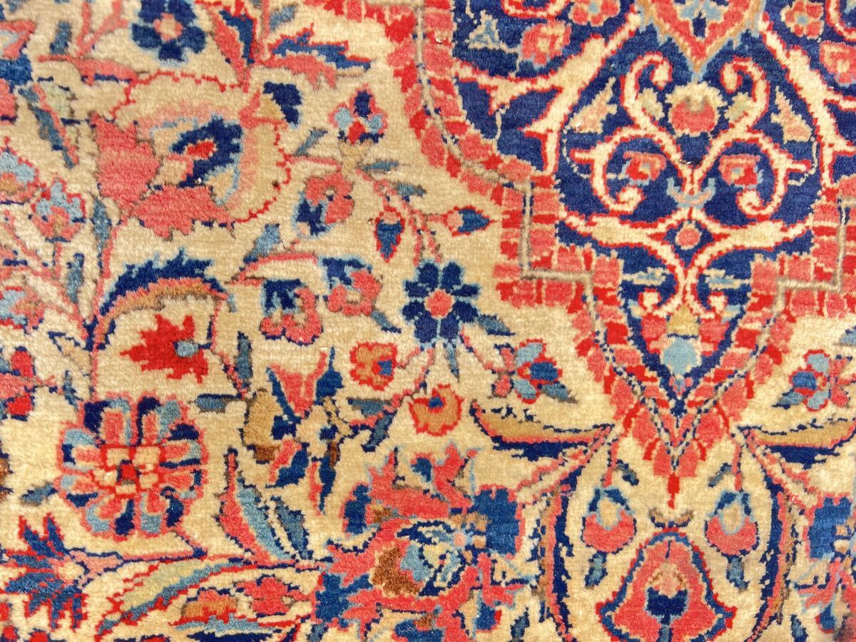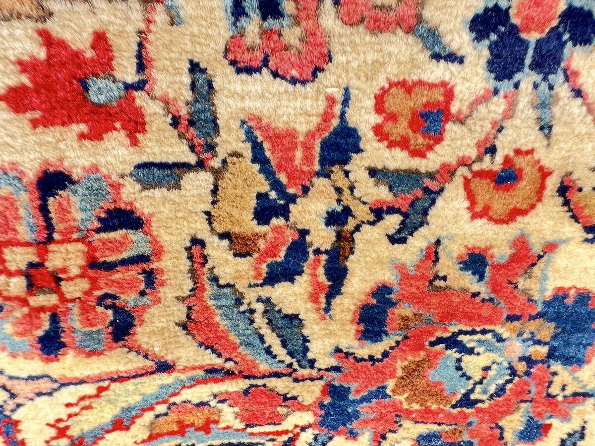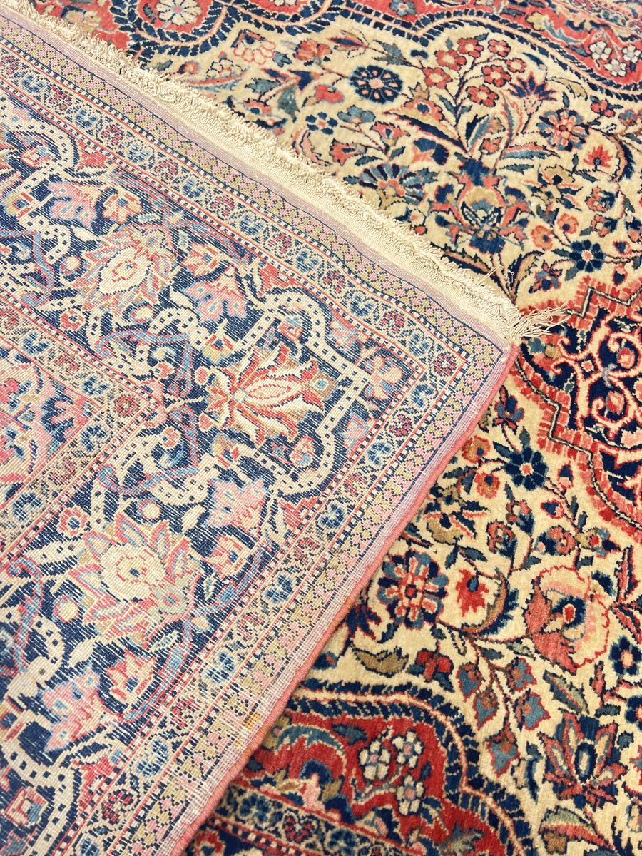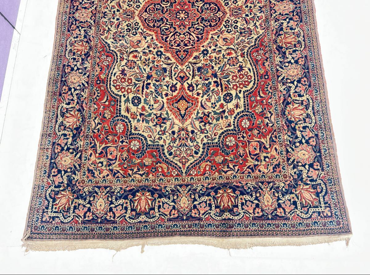 イラン最大の都市の一つ、マシュハドで作られたこの絨毯は、純粋な天然ウールを手織りで織り上げています。マシュハド絨毯は、その独特な大きさと非常に高品質なウールで知られています。品質は良好です。長期間室内で保管しており、ナフタリンの臭いが若干あります。商品のサイズは約145cmです。Cランクの商品です。梱包サイズは約200cmです。木箱に入れてお届けします。佐川急便で発送いたします。