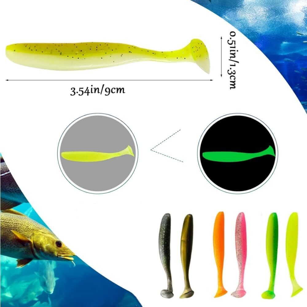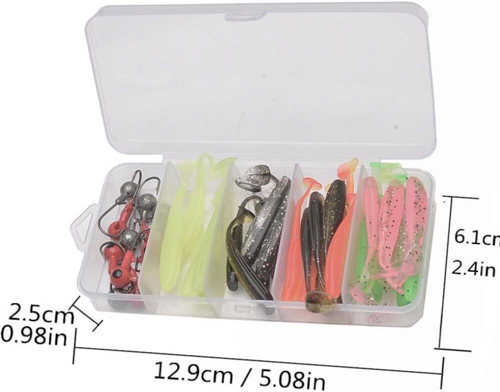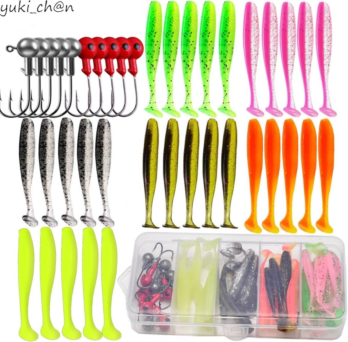 ワーム ルアー ルアーセット 40個セット 9cm × 1.3cm ジグヘッド バス釣り アジ釣り 釣り針セット 収納ケース付き