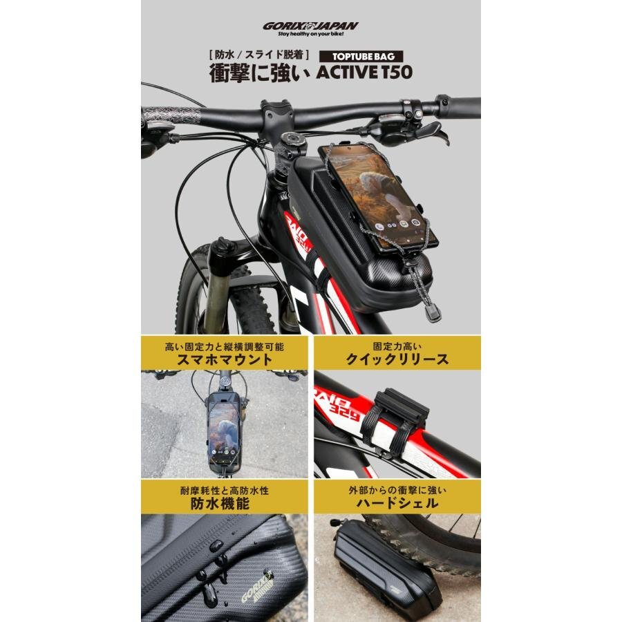 GORIX トップチューブバッグ active T50 「スマホマウントできる大きめトップチューブバッグ」 このトップチューブバッグは、自転車、マウンテンバイク、eMTBのライドをより快適にする便利なアイテムです。 大きめタイプのトップチューブの為、MTB向けとしております。 スマホマウント機能付きで、6.1~6.8インチのスマートフォンに対応。360°調節可能で、縦・横どちらの向きでも快適に使用できます。 ハードシェル構造により外部衝撃に強く、防水性も備えているため、急な雨でも安心。1Lの容量があり、補給食や鍵などの小物を安全に収納できます。 大きく開くデザインで荷物の出し入れもスムーズ。専用ブラケットは高い固定力を誇り、工具でしっかり締め付けるタイプなので、安定感抜群です。 軽量かつ耐久性に優れた素材を採用し、自転車での長距離ライドや日常の通勤・通学にも最適。 機能性と利便性を兼ね備えたトップチューブバッグで、快適なサイクリングをサポートします。 特徴 ●スマホマウント機能付き ●6.1-6.8インチの携帯電話に対応 ●調節可能で縦・横どちらの向きでも使用可能 ●ハードシェル構造で外部衝撃に強い ●防水性あり ●荷物を安全に収納 ●容量1L ●大きく開くデザイン ●高い固定力の専用ブラケット ●工具でしっかり締め付けるタイプ ●軽量で耐久性に優れた素材 【トップチューブバッグ】 トップチューブバッグは、自転車、MTBのトップチューブに簡単に装着できる便利な自転車バッグです。 アクセスしやすい位置にあるため、ライド中でもスマホや補給食、小物を素早く取り出せます。 さらに、このトップチューブバッグはスマホをマウントでき、ナビや通知を確認しながら快適に走行可能。 高い固定力を備えており、振動や衝撃にも強く、安定した装着が可能です。 ロードバイクや自転車でのツーリングや通勤・通学に最適なトップチューブバッグです。 【スマホマウント機能】 トップチューブバッグにはスマホをしっかり固定できるマウント機能を搭載。 6.1-6.8インチの携帯電話に対応し、調節可能な設計で縦・横どちらの向きでも使用できます。 弾力性のあるコードとバックル締め構造により、高い固定力を実現。 走行中の振動にも強く、安全にスマホを保持します。ナビや通知の確認がスムーズにでき、快適なライドをサポートします。 【バッグの素材】 EVA + PU + ポリエステル素材を使用し、高い耐久性と防水性を実現。 ハードシェル表面が外部からの衝撃をしっかり吸収し、バッグ内部のスマホや小物をしっかり保護します。 硬い感触で型崩れしにくく、長時間の使用でも変形しにくい設計。ロードバイクや自転車の激しいライドでも安心して使えます。 雨や泥はねにも強く、全天候に対応するトップチューブバッグで快適なサイクリングをサポートします。 ※完全防水ではございませんので、長時間の雨にはご注意ください。 【優れた収納力】 1Lの容量で、財布、工具、スマホ、補給食などの小物をすっきり収納可能。 大きく開くデザインで中身が見やすく、必要なものを素早く取り出せます。 コンパクトながら実用性の高い収納スペースを実現。 【高い固定力の専用ブラケット】 付属の専用マウントでしっかり固定し、最大Φ55mmまでのトップチューブに対応。 ベルト式と比べて固定力がさらに高く、走行中のズレを防ぎます。工具でしっかり締め付けるタイプのため安定性が抜群。 バッグ本体はスライド式で簡単に脱着できるため、駐輪時の持ち運びもスムーズ。 確実な固定と使いやすさを両立した設計です。 【商品内容】トップチューブバッグ 【サイズ】長さ23.5cm, 幅9.6cm, 高さ10-12.3cm 【重量】295g 【容量】1L 【素材】EVA + PU + ポリエステル 【主な仕様】EVAハードケース (外部衝撃に強い)/360°回転可能/6.1-6.8 インチのスマホ対応 【付属】専用ストラップ3本、ボルト3本、ゴムパッド1点、専用マウント1点、六角工具、日本語説明書 【マウント対応】円形チューブ φ30-55mm、楕円形チューブ φ35-55mm 【トップチューブバッグご購入時の注意事項】 ご購入前にバッグの幅や長さをよくご確認ください。 装着する自転車の形状によっては、ペダリング時に膝に当たることがあります。 特に短いトップチューブの自転車は膝が干渉しやすくなります。 商品は入荷によりキズがある場合があります。 傷や細かい汚れが気になる方や神経質な方は入札をお控え下さい。 入荷時期により予告無く一部仕様変更する場合が有ります。 カラーはディスプレイ種類環境等により実物と異なって見える場合がございます。 |