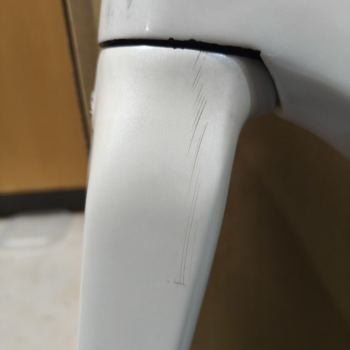 購入時よりフレーム左側に大きな塗装ハゲがあります。指で押し込んでもしっかりしておりますが、念の為ご了承ください。