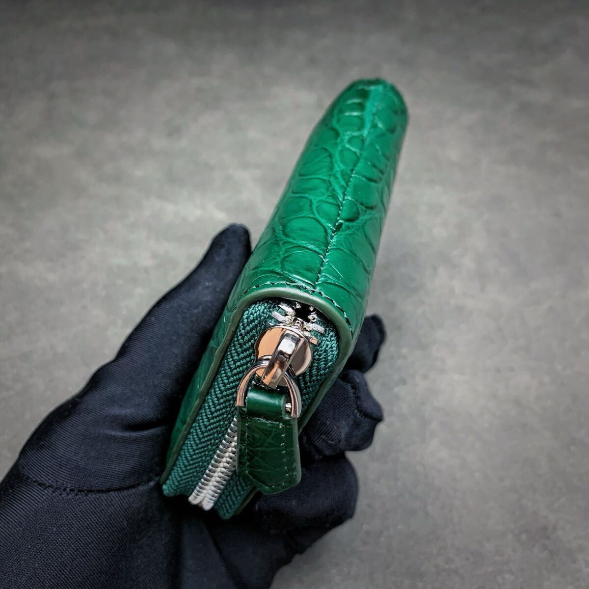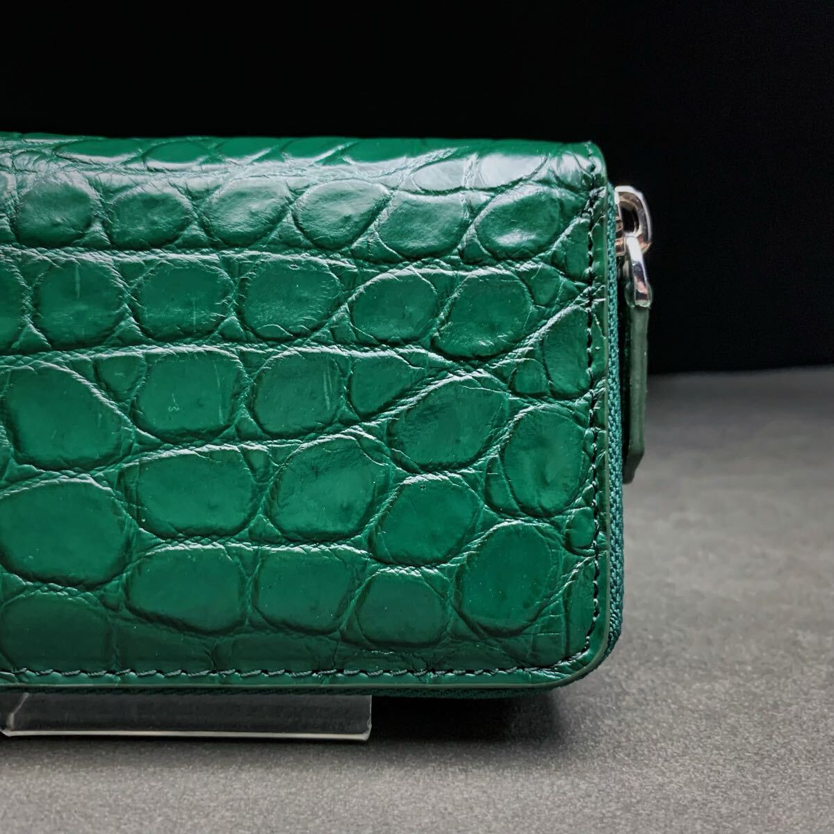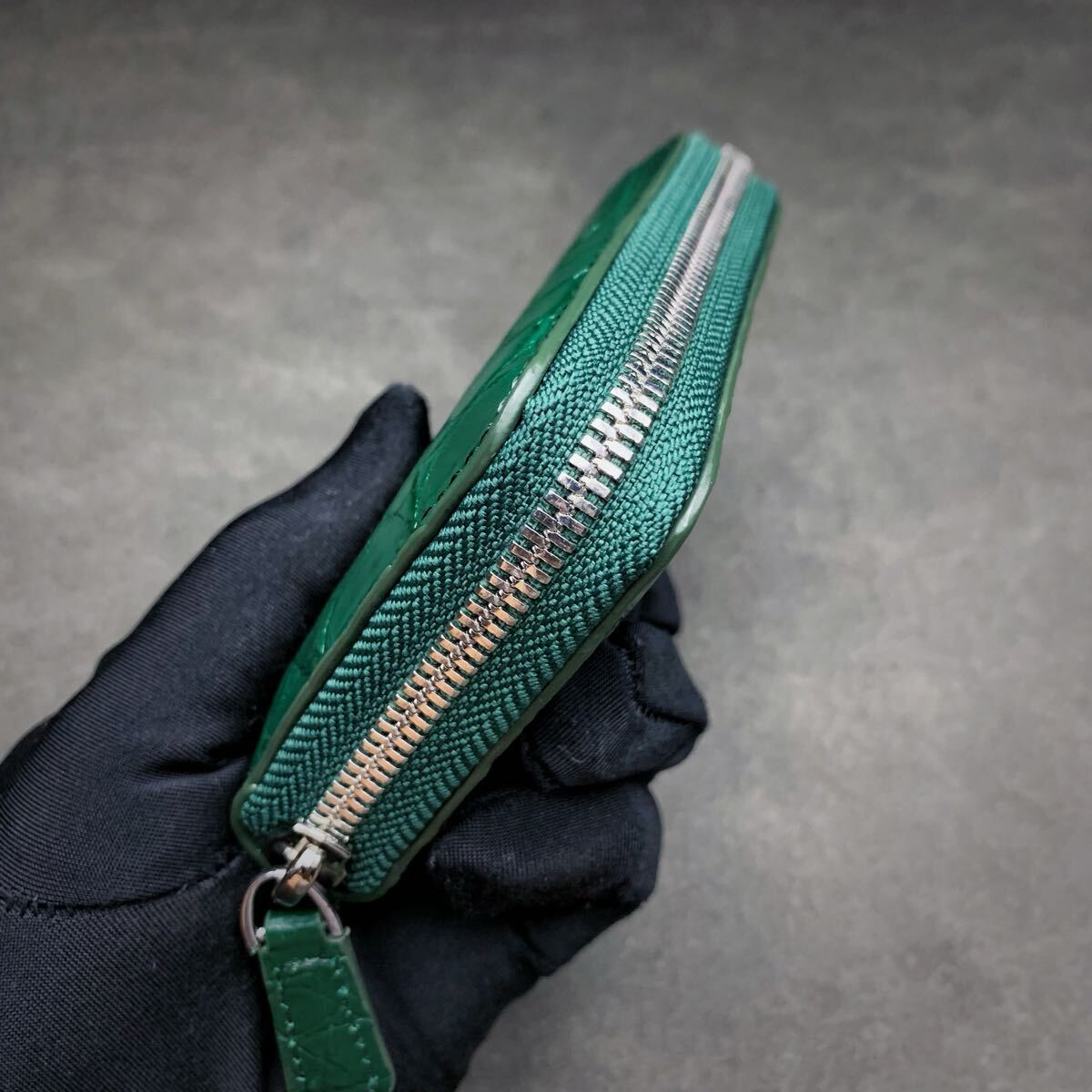 クロコダイルと呼ばれている品種のワニ革は人気が高く、独特の模様と凹凸が魅力で、高級ブランド品を中心にクロコダイルが多く使われています。今回はワニ革の代表格である<シャムクロコダイル>の腹革のラウンドファスナー財布を出品します。