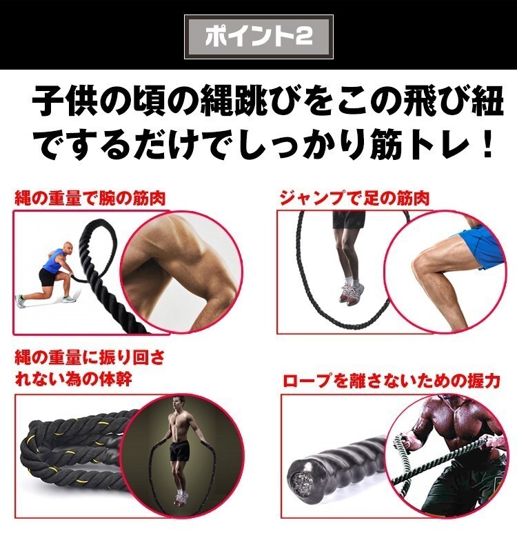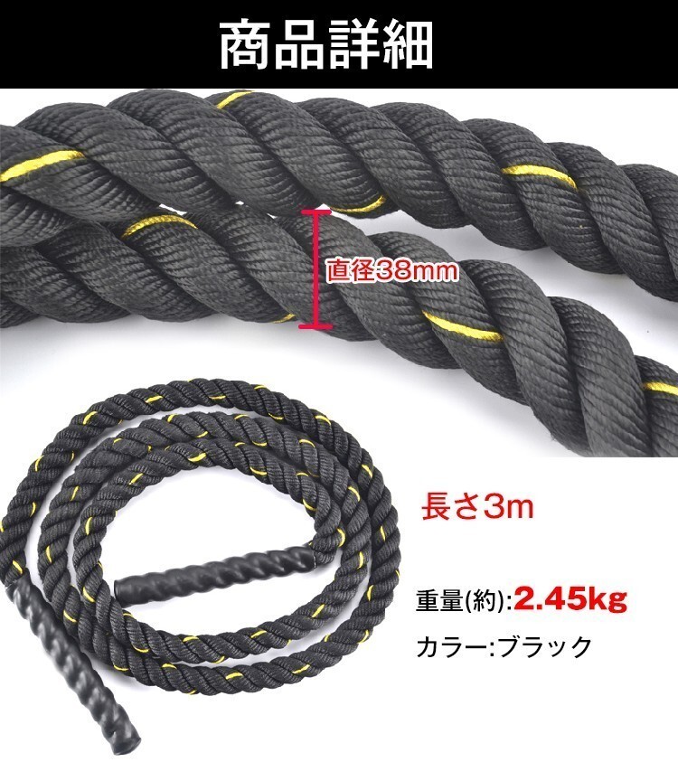 送料無料 縄跳び トレーニング なわとび 筋トレ ダイエット 縄 ロープ フィットネス ジム バトル 運動 体幹 極太 2.4kg 3m 二の腕 de044