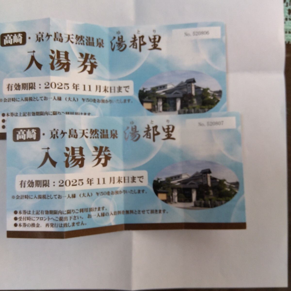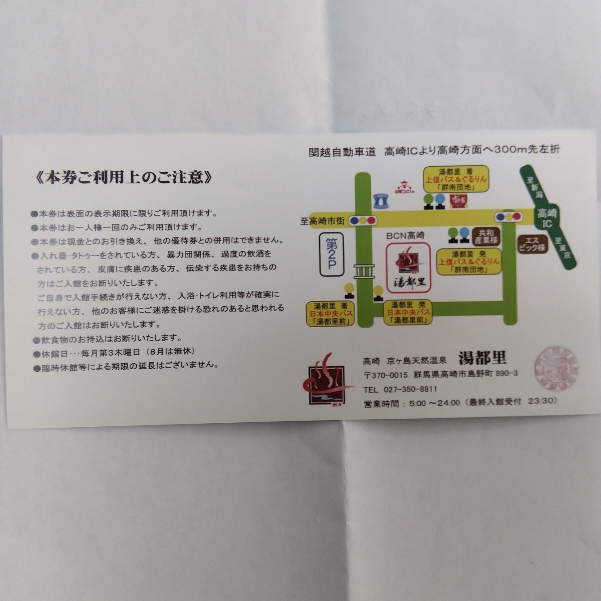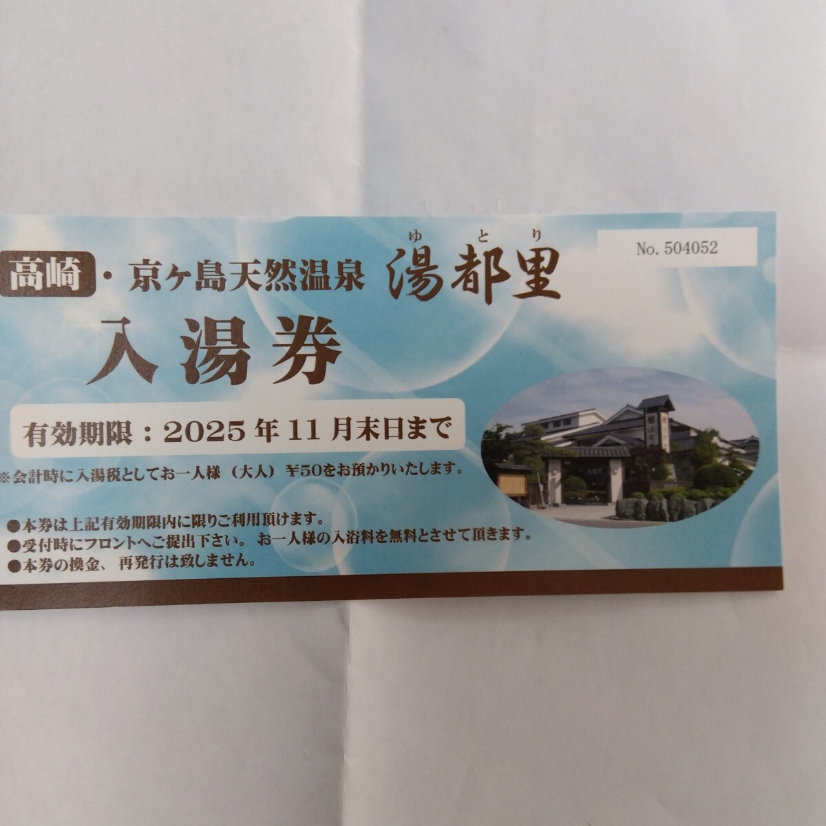 高崎 京ヶ島天然温泉 湯都里の入湯券8枚セットです。