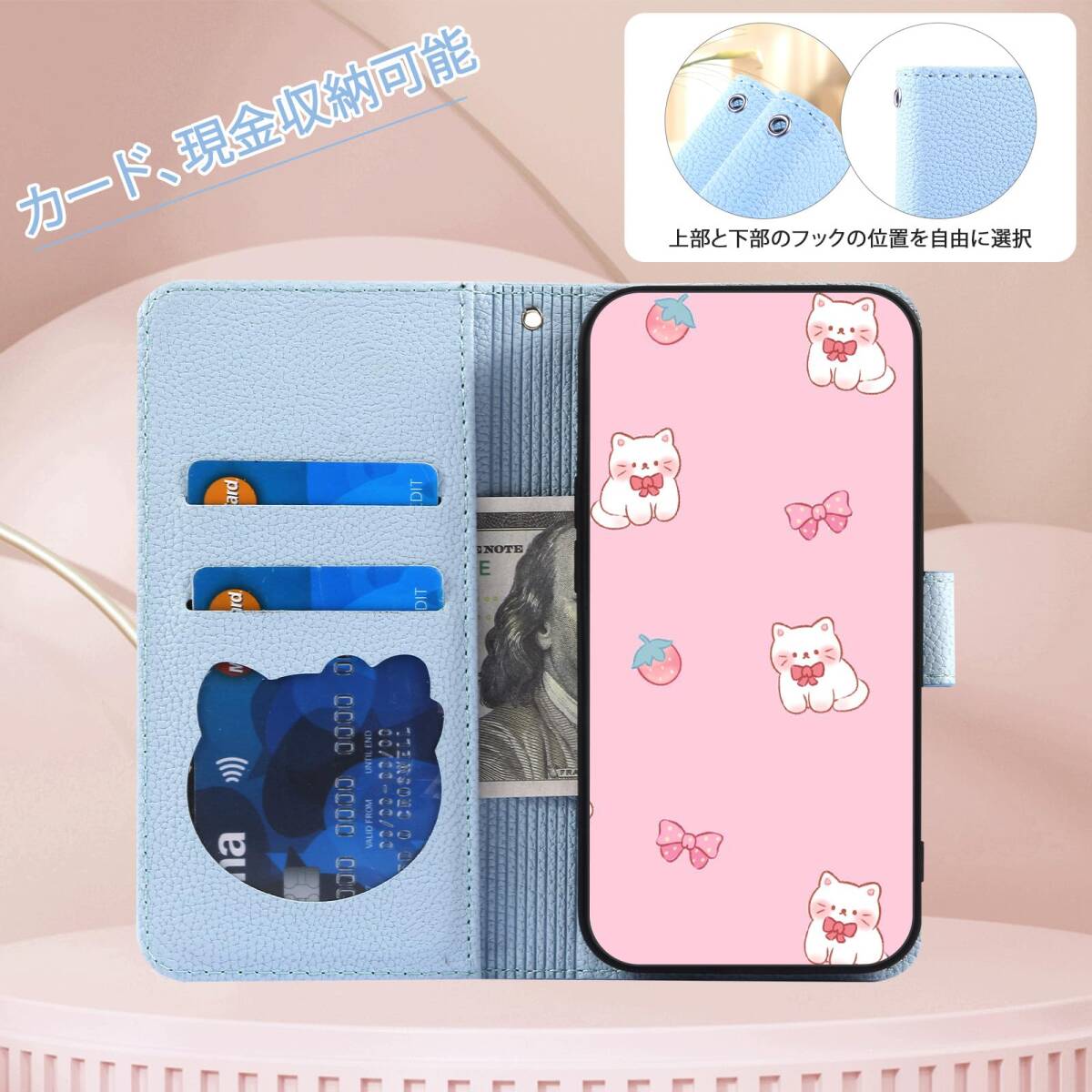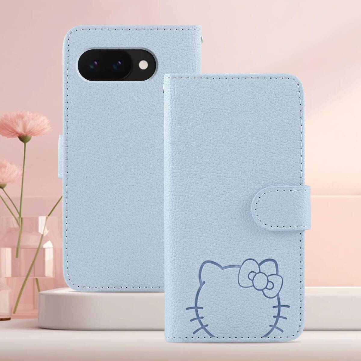 Kedic 対応 Google Pixel 9a ケース 手帳型 大きな花の顔の猫のパターン ぐーくるぴくせる9aケース ピクセル9a カバー Google Pixel9a スマホカバー 手帳型 グーグルピクセル9aケース の選択 指紋なし 適度な厚さ 軽量グリップ 柔軟性 より包括的な保護 スマホ スタンド ライトブルー