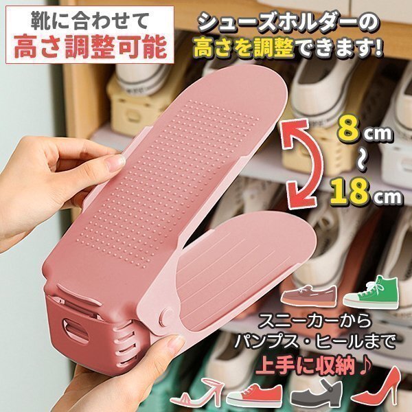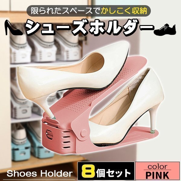 シューズホルダー 靴収納 8足分 スニーカー収納 ピンク 玄関収納 くつホルダー 靴ホルダー 靴 収納 靴箱整理 靴 靴箱 下駄箱 玄関 スリム