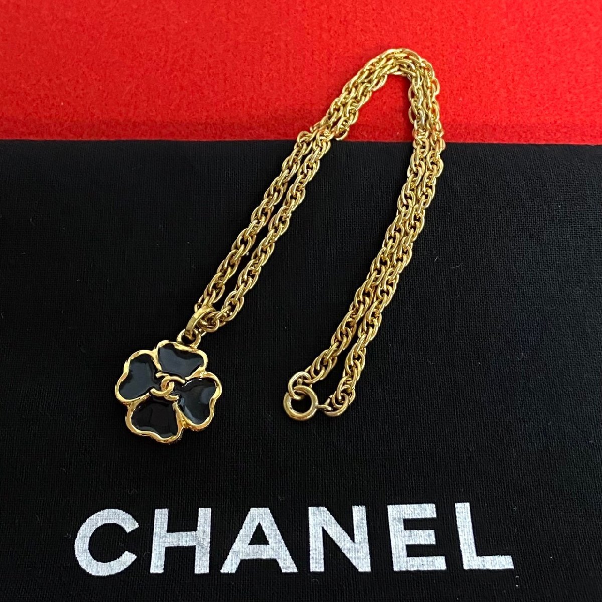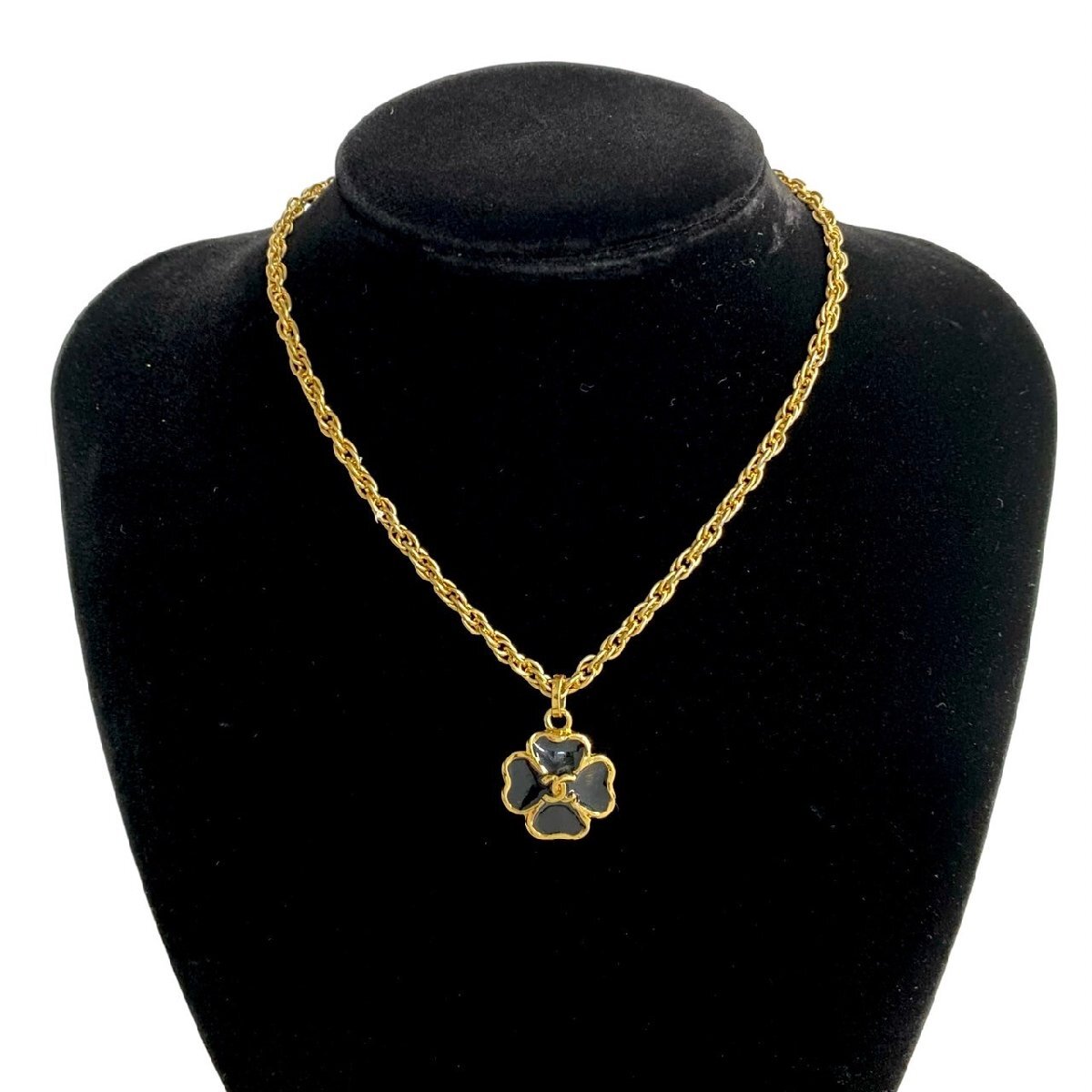 極 美品 CHANEL シャネル ヴィンテージ 3483 刻印 ココマーク クローバー モチーフ チェーン ネックレス ペンダント ゴールド 70883