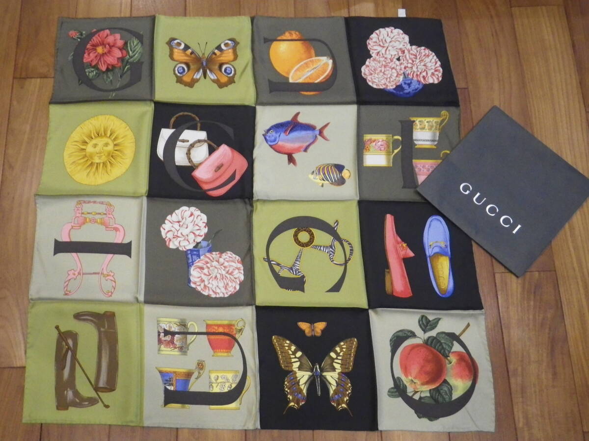 未使用品 GUCCI シルク100%スカーフ オールドグッチ