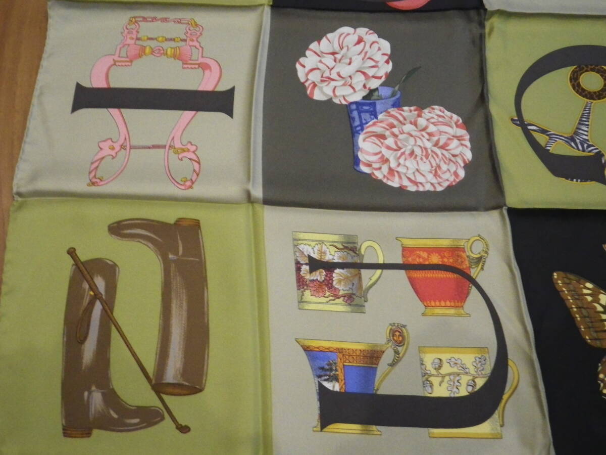 未使用の保管品です。90㎝角サイズ。シルク100%