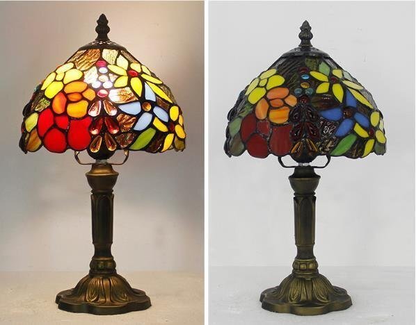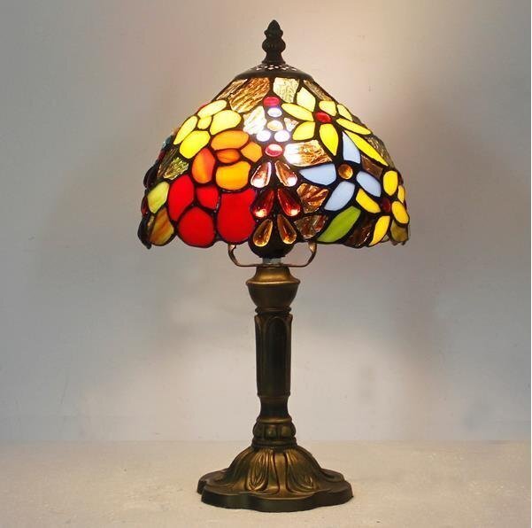 極美品★ステンドランプ 電気スタンド テーブルライト 花柄 レトロな雰囲気がおしゃれヴィンテージティファニー技法デスクライト