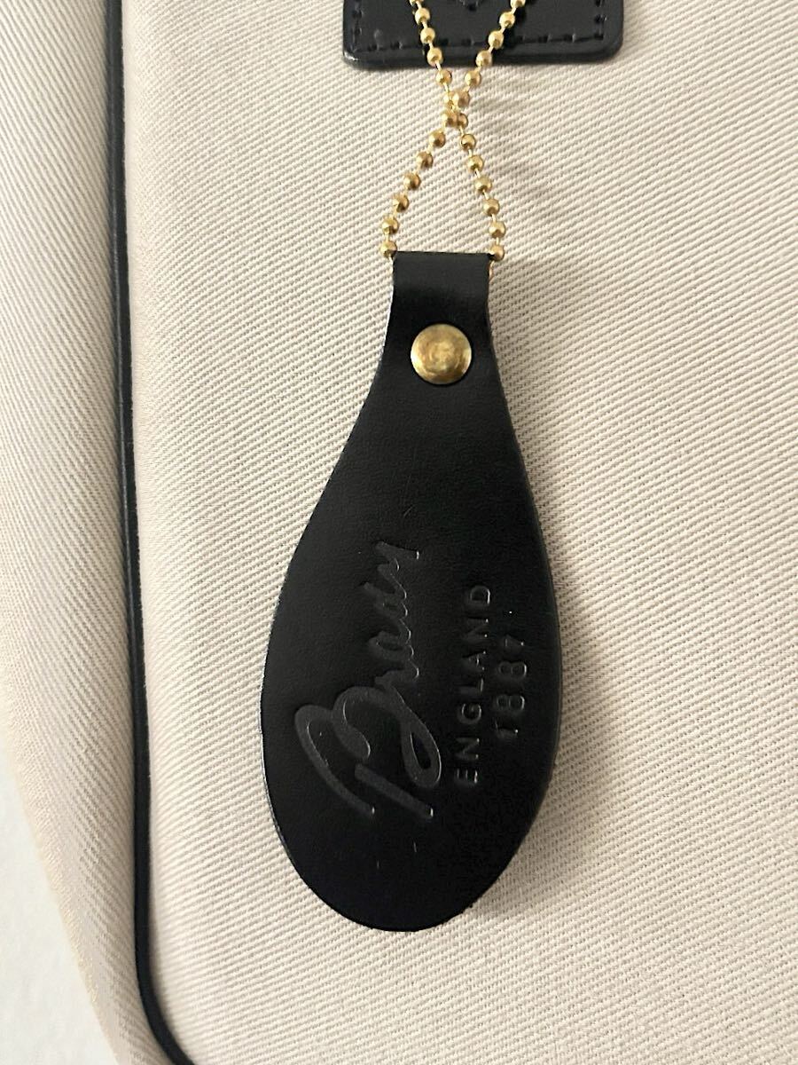 開口部はブライドルレザーのストラップとギボシの一点留めです。
