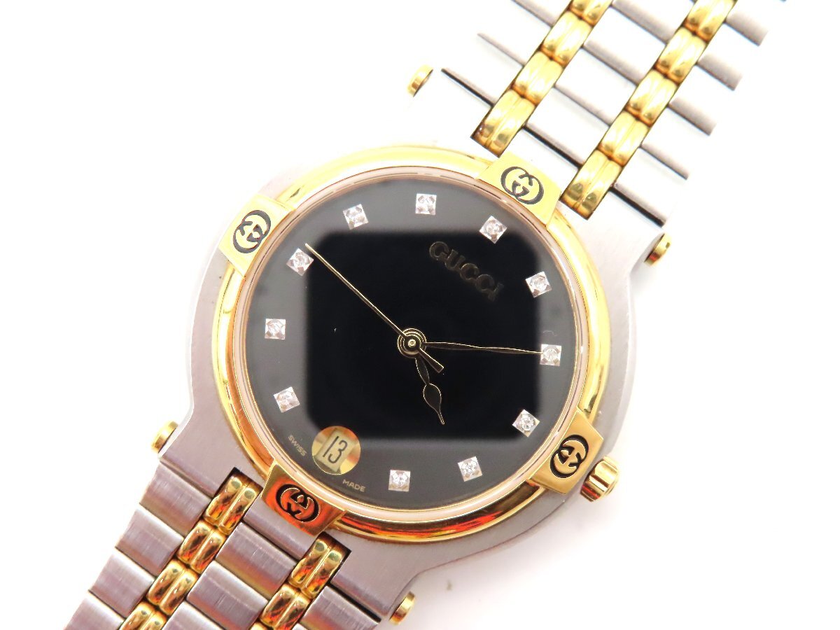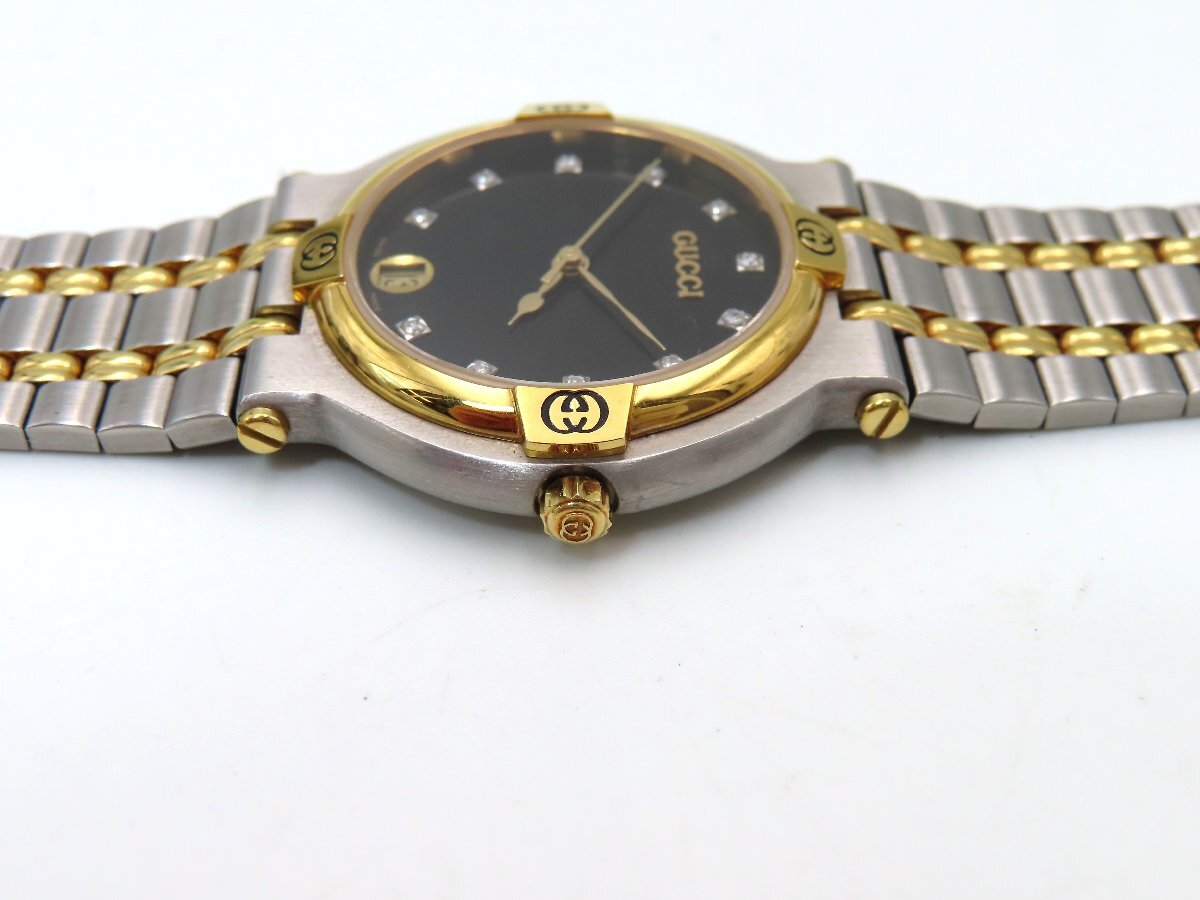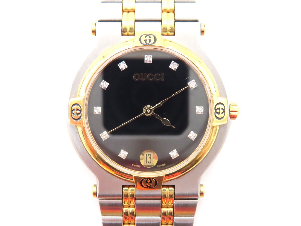 1円 グッチ 9000M SS/GP ブラック文字盤 ボーイズ 稼働 QZ 26223 LLRS