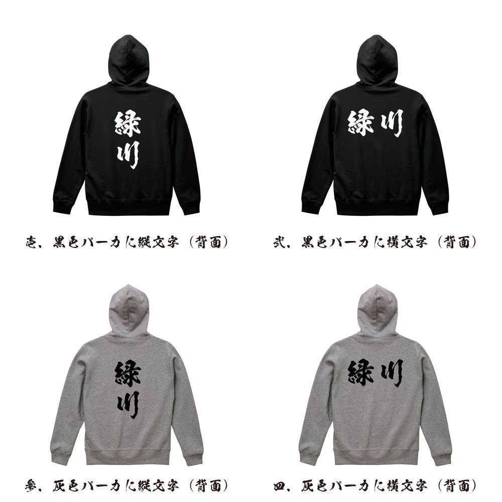 緑川 書道家が書く デザイン フルジップ パーカ 【 名字 】 メンズ レディース キッズ