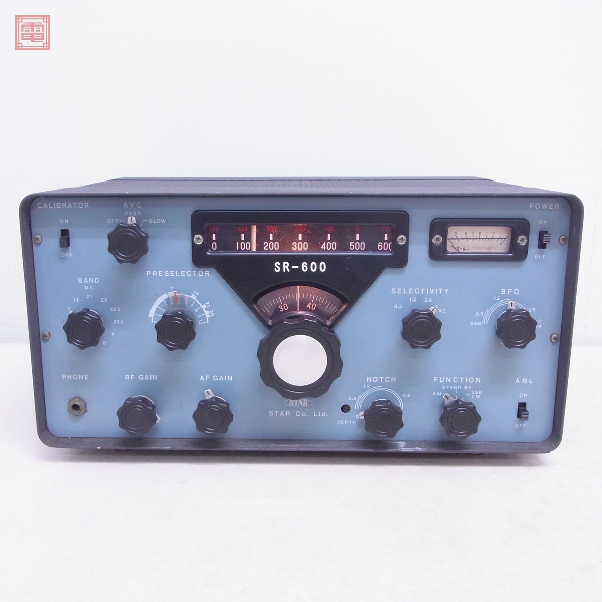 STAR スター SR-600 真空管受信機 通電のみ確認 ジャンク ■ジャンク品として出品しておりますので、どの様な不具合が生じましても当店では交換・返金・返品等の対応はできません。 ■ご理解ご納得いただける方のみご入札をお願いいたします。 ■<出品物> ・本体のみ ■<状態> ・通電し動作確認を試みた所、アンテナを繋いでもザー音のみで受信できませんでした。 ・よって部品の欠損や破損、故障、改造の有無等も未確認です。 ・ツマミやスイッチは全て触って動かせましたが、動作未確認の為正常に機能しているかは不明です。 ・Sメーターは振れませんでした。 ・動作確認は前面のPHONE端子に手持ちの外部スピーカーを接続して行いました。 ・AFゲインに大きなガリがあります。 ・タバコ臭はありません。 ・以上の点からジャンク品、ノークレーム・ノーリターンでお願い致します。 ・ジャンク品の為、ご質問の内容により回答を致しかねる場合があります。 ■写真のものが全てです。付属物の有無や状態については写真からご判断ください。 ■付属物については細かいチェックはしておりませんので、万が一、欠品があったり余計な物が入っていたとしてもご了承ください。 ■商品到着後、当店の保証期間中は、商品及び箱や取説、付属品などを1つでも廃棄や破損をしないようにお願い致します。廃棄や破損をした場合、商品に問題があった場合でも対応や返金などの対処ができなくなります。 ■商品によりますが、発売されてから10年以上経過している中古品である事をご理解頂いた上でご入札をお願い致します。なお、新品や美品、また特記事項がある場合は別途明記します。 | |||
