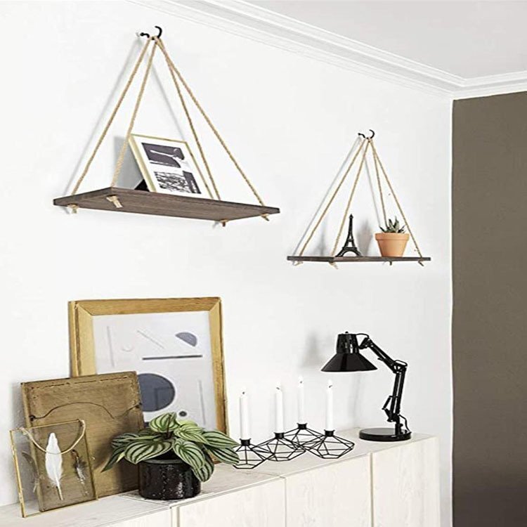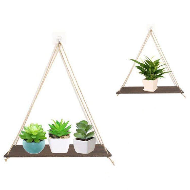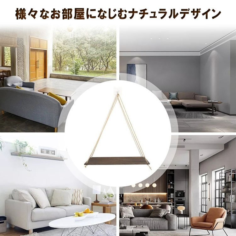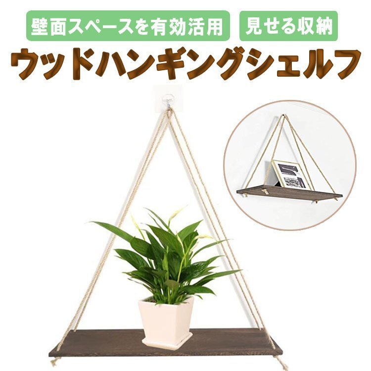 ◆ウッドハンギングシェルフ ウォールシェルフ 飾り棚 壁掛け棚 吊り下げ棚 壁掛けフック付き インテリア おしゃれに収納 観葉植物/雑貨/ツールなどに ウッドシェルフ WHS3514
