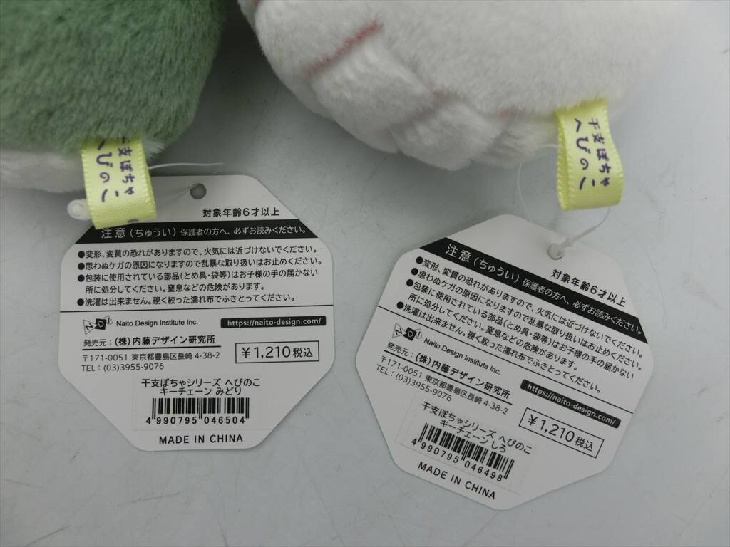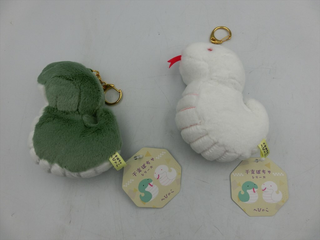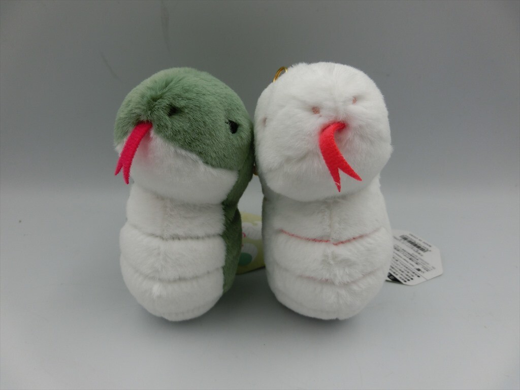 T【4x-76】【60サイズ】▲干支ぽちゃシリーズ へびのこ キーチェーン みどり & しろ/ぬいぐるみ マスコット/※傷有り