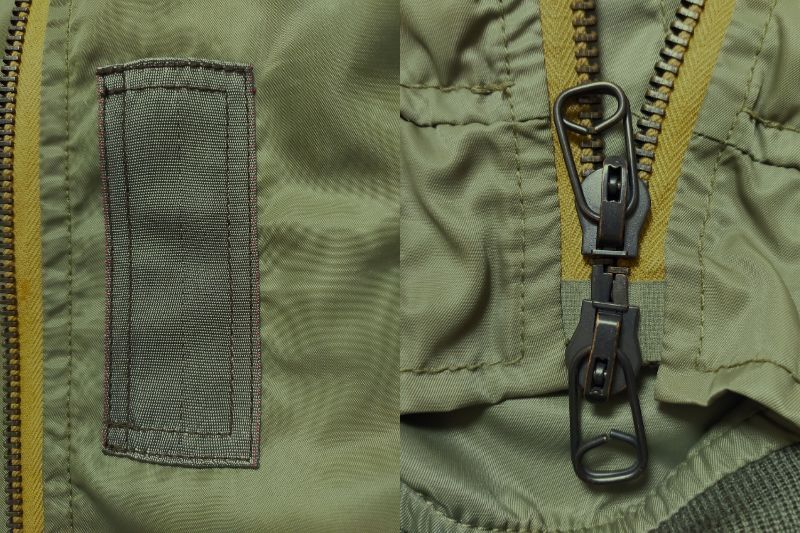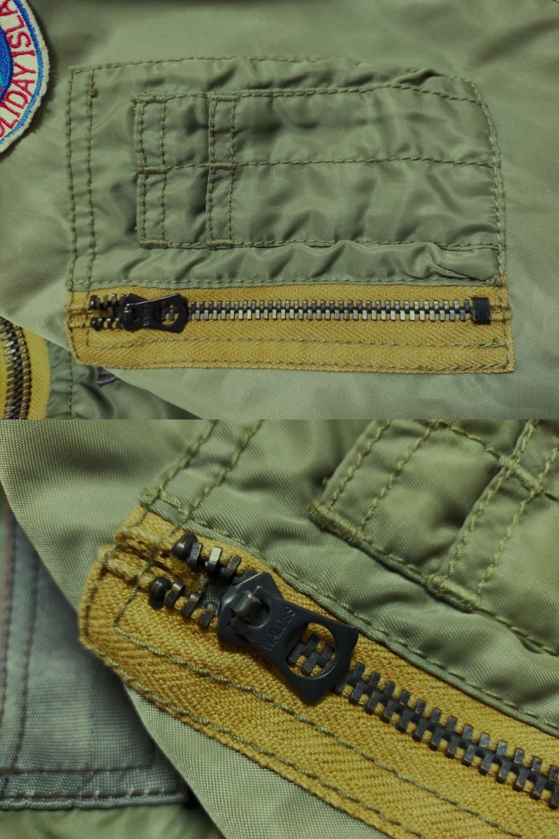 送料無料でお送りいたします。 カラー:オリーブ サイズ:SMALL(日本規格サイズ) 【実寸】 着丈 61(襟下~裾リブ含む) 袖丈 64(袖リブ含む) 肩幅 41 身幅 49 (当方素人採寸による実測のため、多少の誤差があるかと思います。ご容赦下さい。) ■ランク:B リブ :伸びなし虫食いなし 良好 ジップ:ワイヤーダブルジップ 正常稼働 ■備考 ※古着フライトジャケットとして程よいUSED感で着やすいです。 ※目立つ汚れやダメージはなく、状態は良好です。 ※素材はナイロン100%です。 ※生地はやや厚手のナイロン地でしっかり、中綿なしで羽織りやすいです。 ※㈱TMTジャパンの日本製、正規品です。 ※アメカジ定番アイテムですので流行にとらわれず永くご愛用いただけます。 ※完璧なお品をお求めの方、また中古品にご理解のない神経質な方におきましては、 恐れ入りますがご入札をお控え頂けますようお願い申し上げます。 -------------------------------------------- N:新品 S:未使用or新品同様のお品 A:コンディション良好な美品 B:使用感の有るまずまず良好なお品 C:全体的に使用感の有るお品 D:状態が悪く強い使用感の有るお品 J:ジャンク品or難有り品 1900年代から1970年代の 古き良きアメリカ当時のサブカルチャーを 独自の観点からそれぞれのアイテムに取り入れたデザイン。 カラフルや遊び心のあるデザインや型、 当時の仕様を再現する為、 細部にまでこだわったデザインが特徴。 「温故知新」をテーマに掲げ、 ヴィンテージを再構築することで新しい歴史を生み出す。 | |