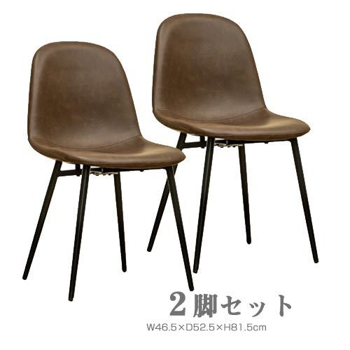 2脚セット) ダイニング チェア シンプル モダン 食卓 椅子 いす リビングチェア PUレザー スチール ヴィンテージ調 Dブラウン 6390