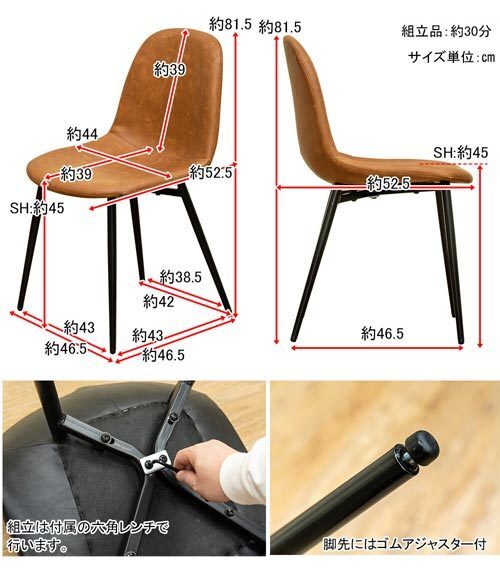 座面は PUレザー・スチール製脚の落ち着いた風合いのチェア2脚セットです。