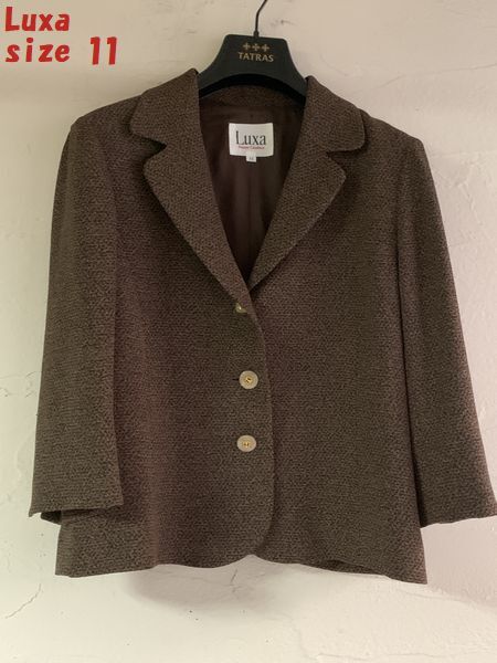 ◆O06◆Luxa ラグゼ 7分袖テーラードジャケット ブラウン 総柄 日本製 サイズ11