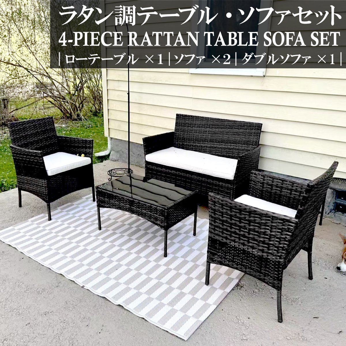 ラタン調テーブル&ソファ4点セット [シングルソファチェア×2 / ダブルソファチェア×1 / ローガラステーブル×1] | |