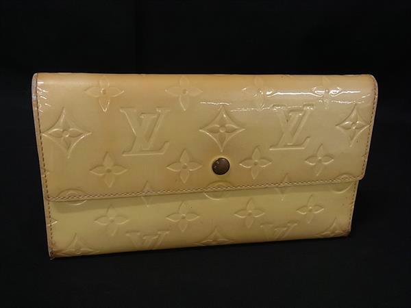 LOUIS VUITTON ルイヴィトン M91354モノグラムヴェルニ ポシェット ポルトモネ クレディ 二つ折り 長財布 ベージュ系 DK4923