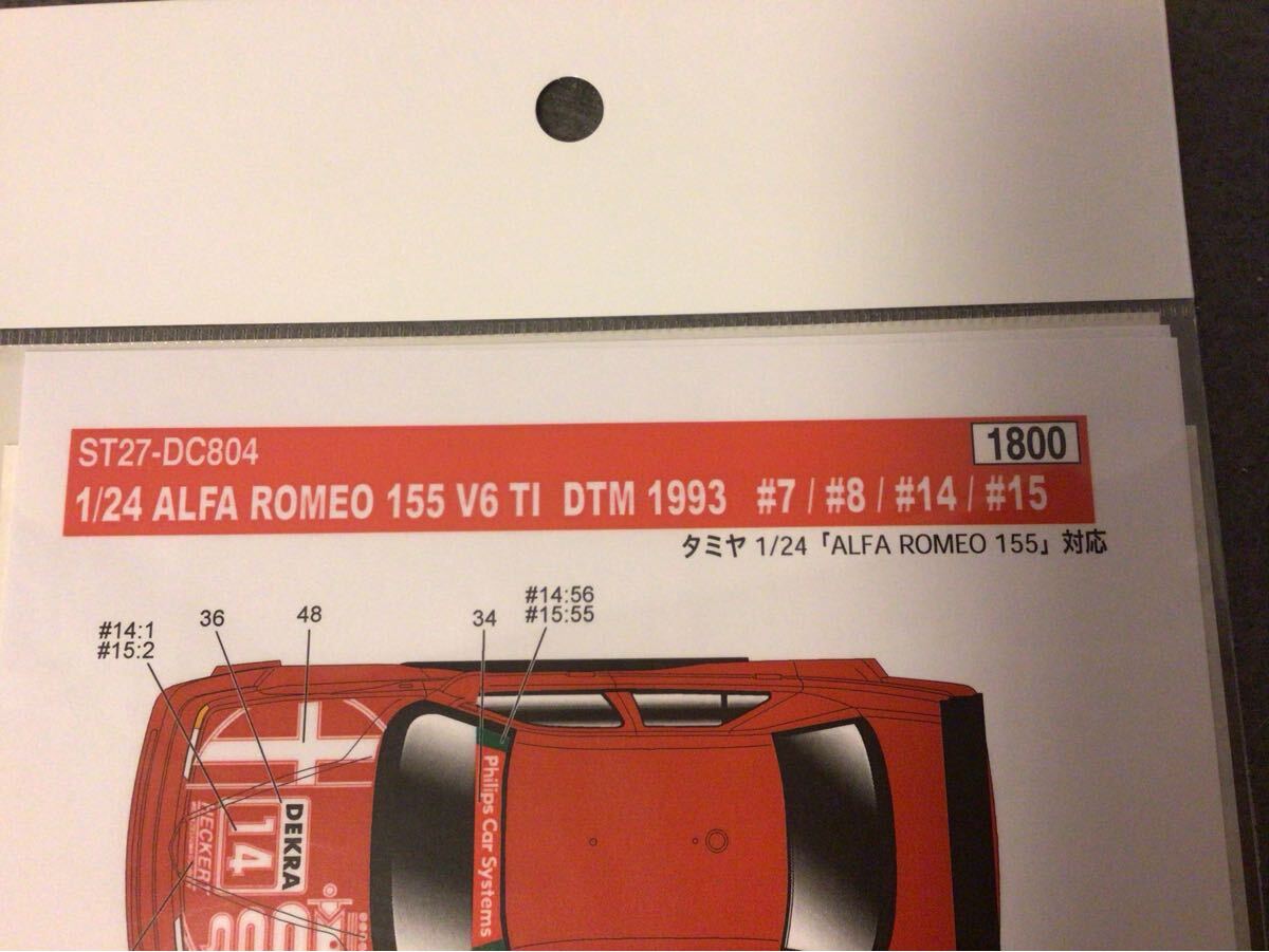 1/24 studio27製デカール。アルファロメオ155 DTM。デカールのみです。古い物なので、NC/NRでお願いします。尚、複数落札で同梱希望の場合は、まとめて取引からお願いします。まとめて取引以外では、同梱できません。以上、宜しくお願いいたします。
