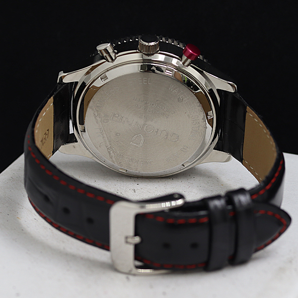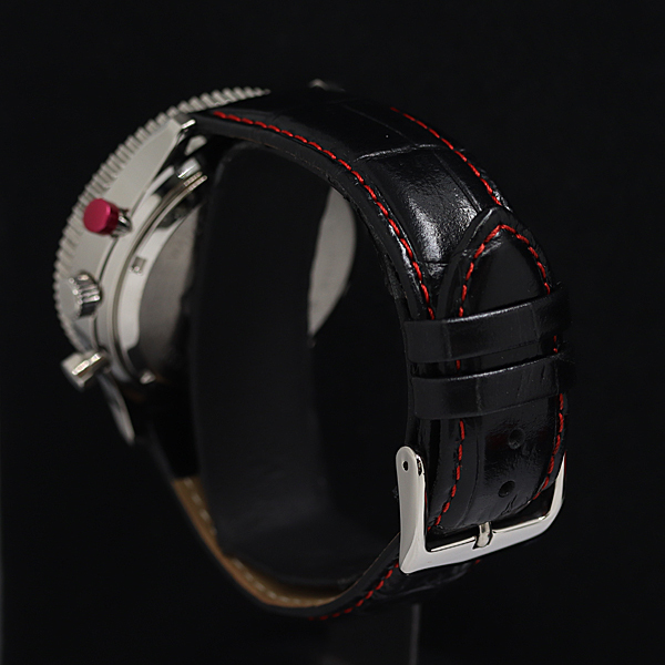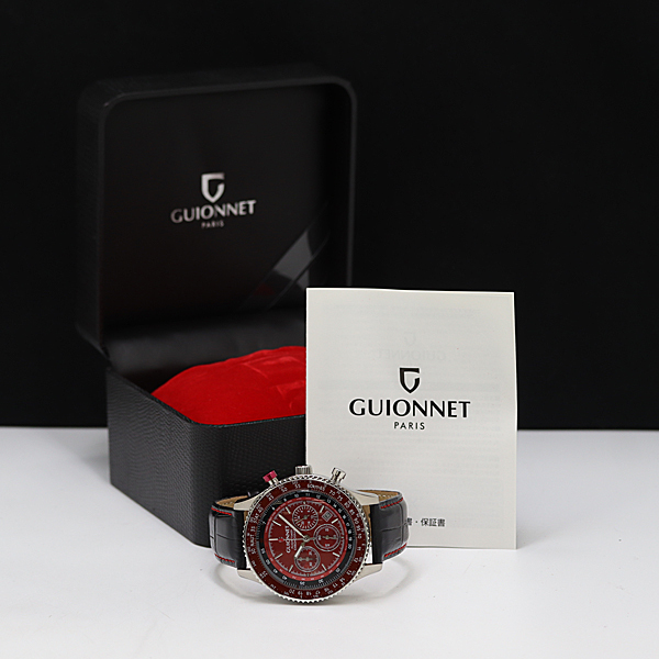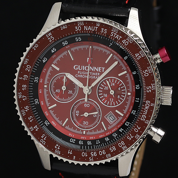 1円 保/箱付 稼働 良品 ギオネ フライトタイマー クロノグラフ QZ レッド文字盤 メンズ腕時計 1927000 10NGB SMZ
