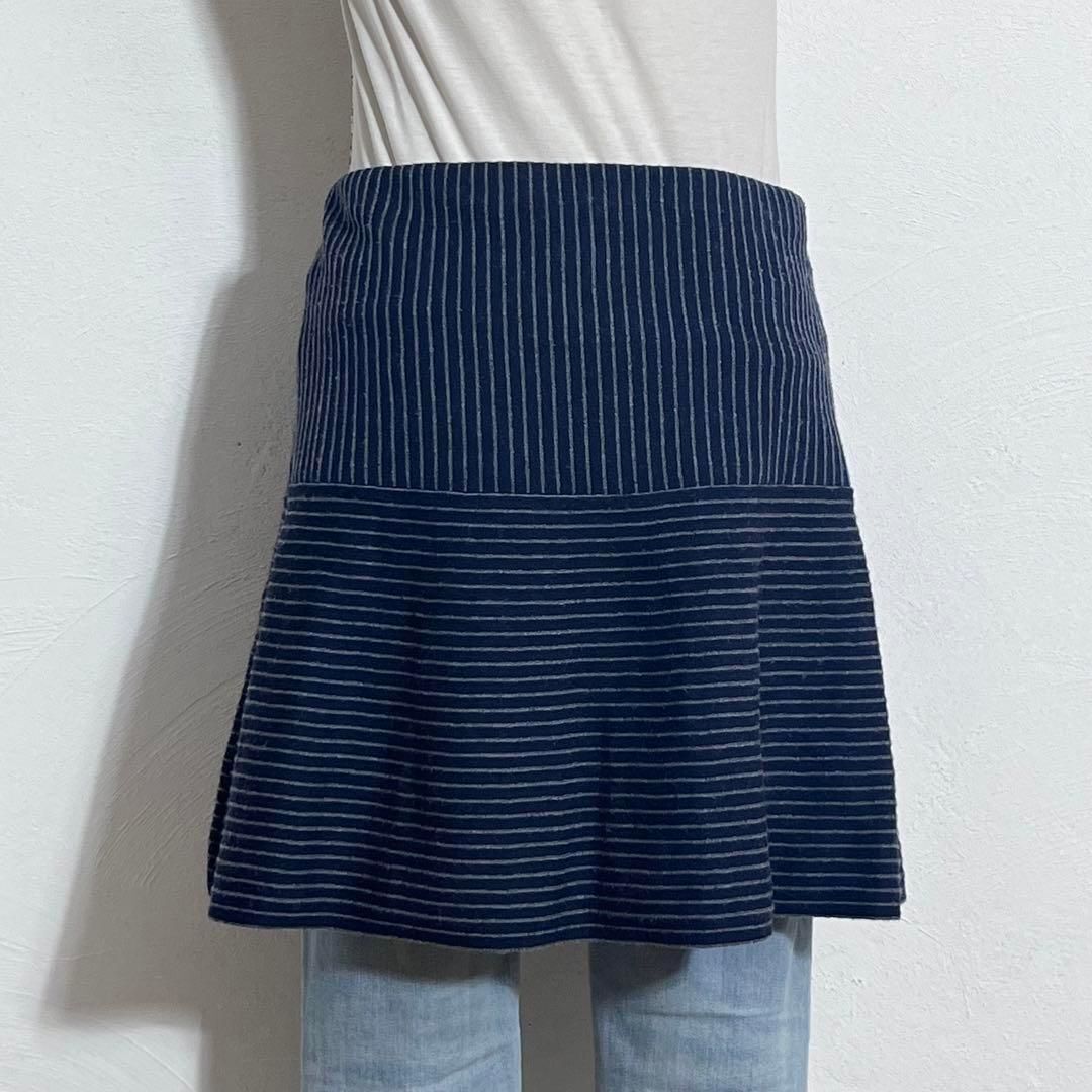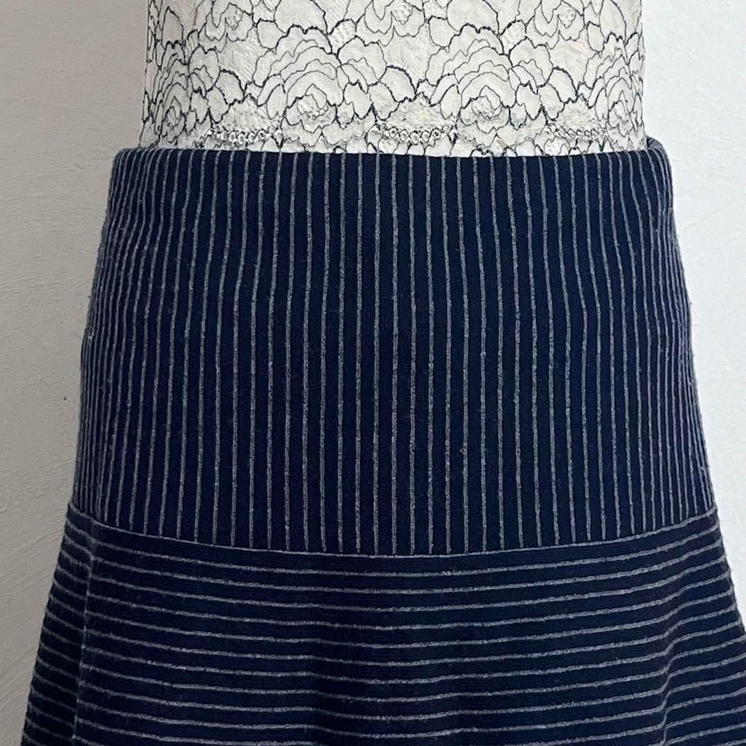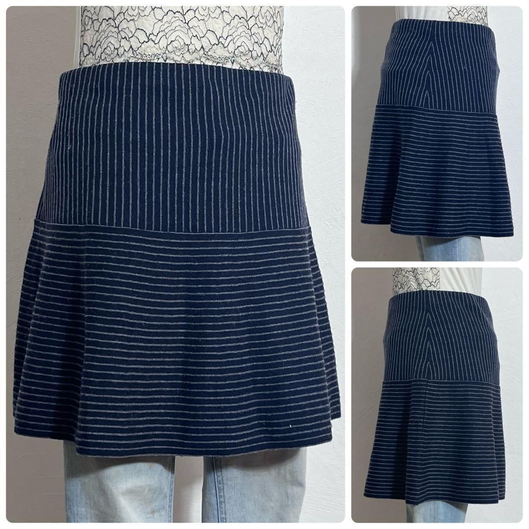 レイヤードにも使える ストライプボーダー切替 フレア ミニ 腰履き スカート レディース