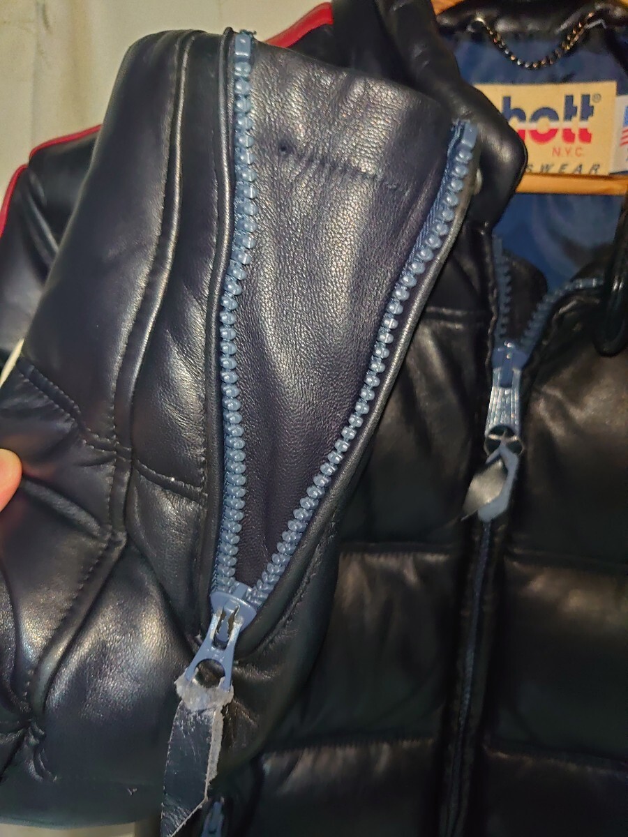 とても柔らかいシープスキンが使用されており動きやすいダウンジャケットとなっています。XLと大きいサイズですがSchottらしいスタイリッシュな作りになっています。