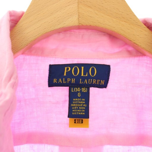 ポロ ラルフローレン POLO RALPH LAUREN シャツ リネン 長袖 刺繍 L 14-16 ピンク /TK キッズ