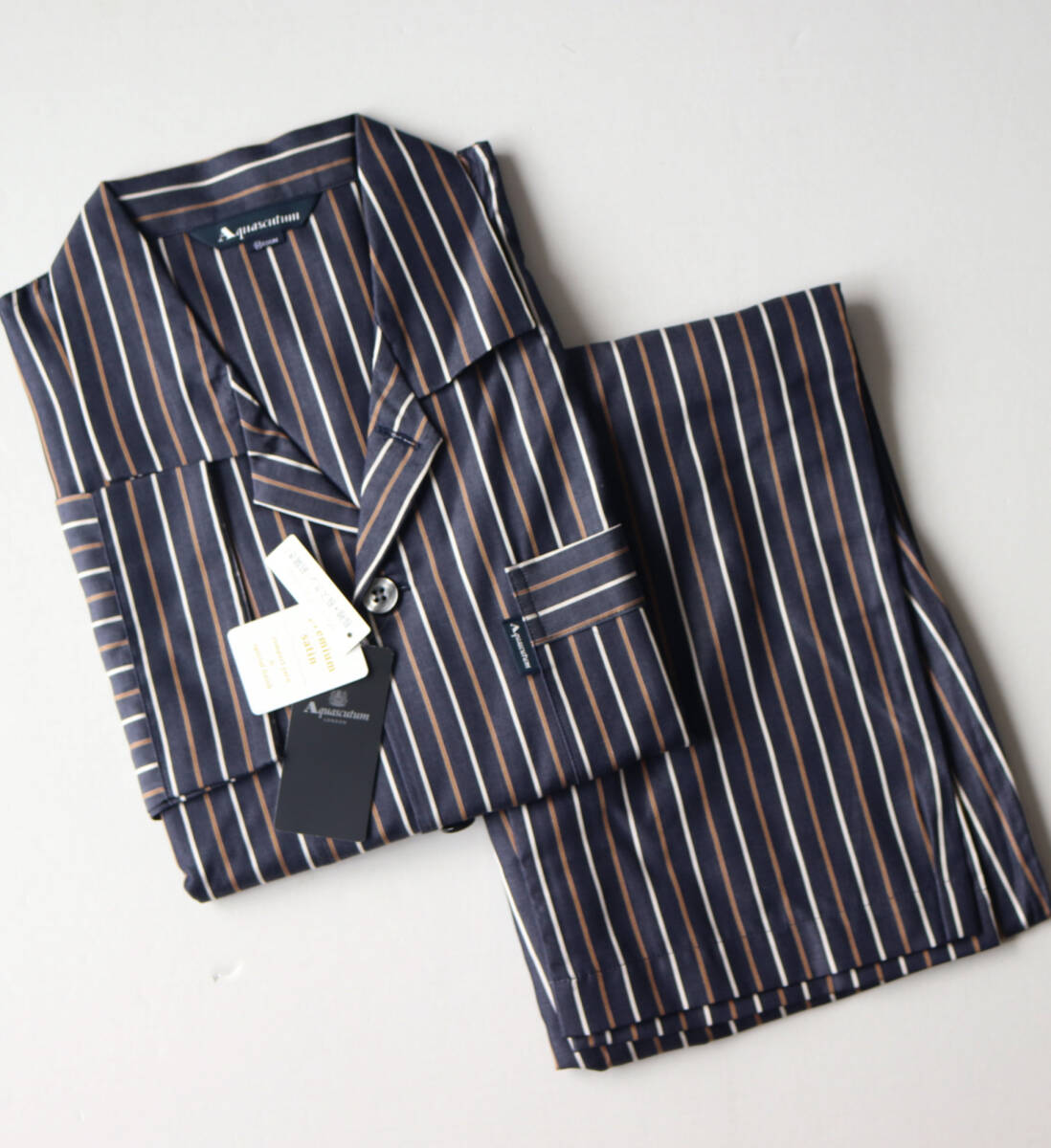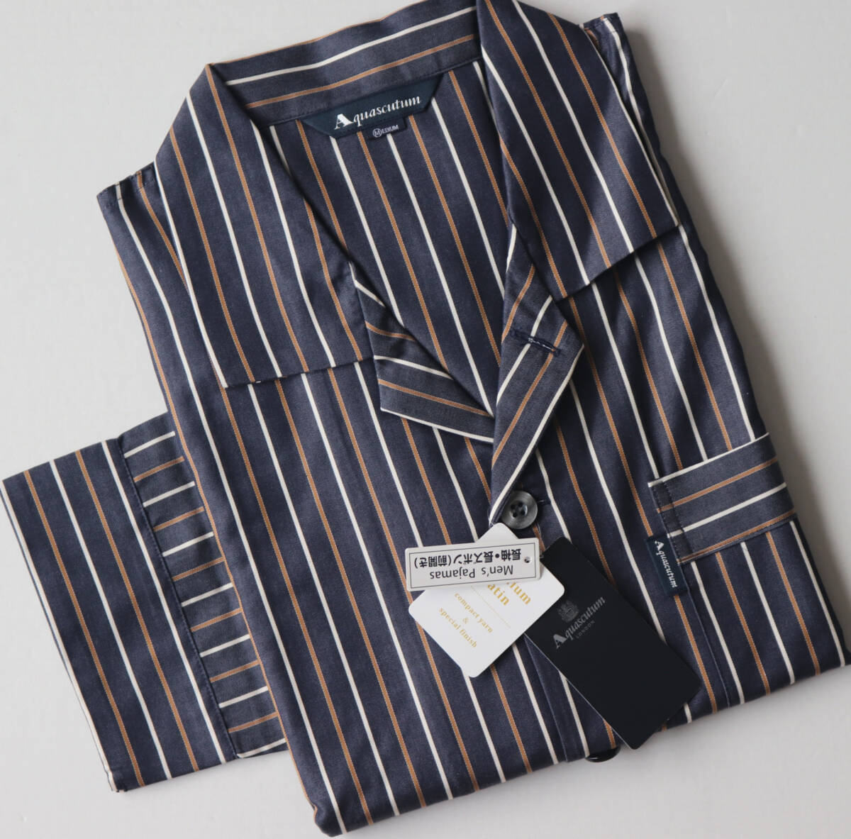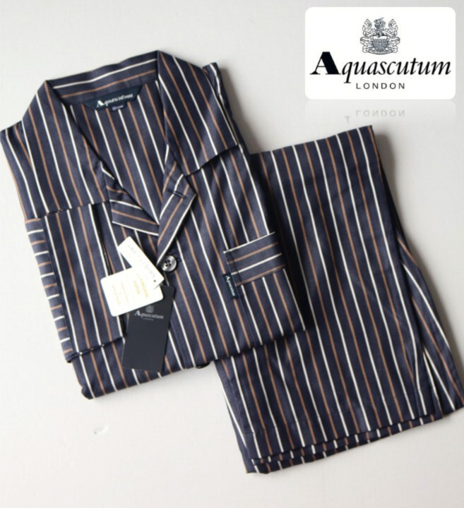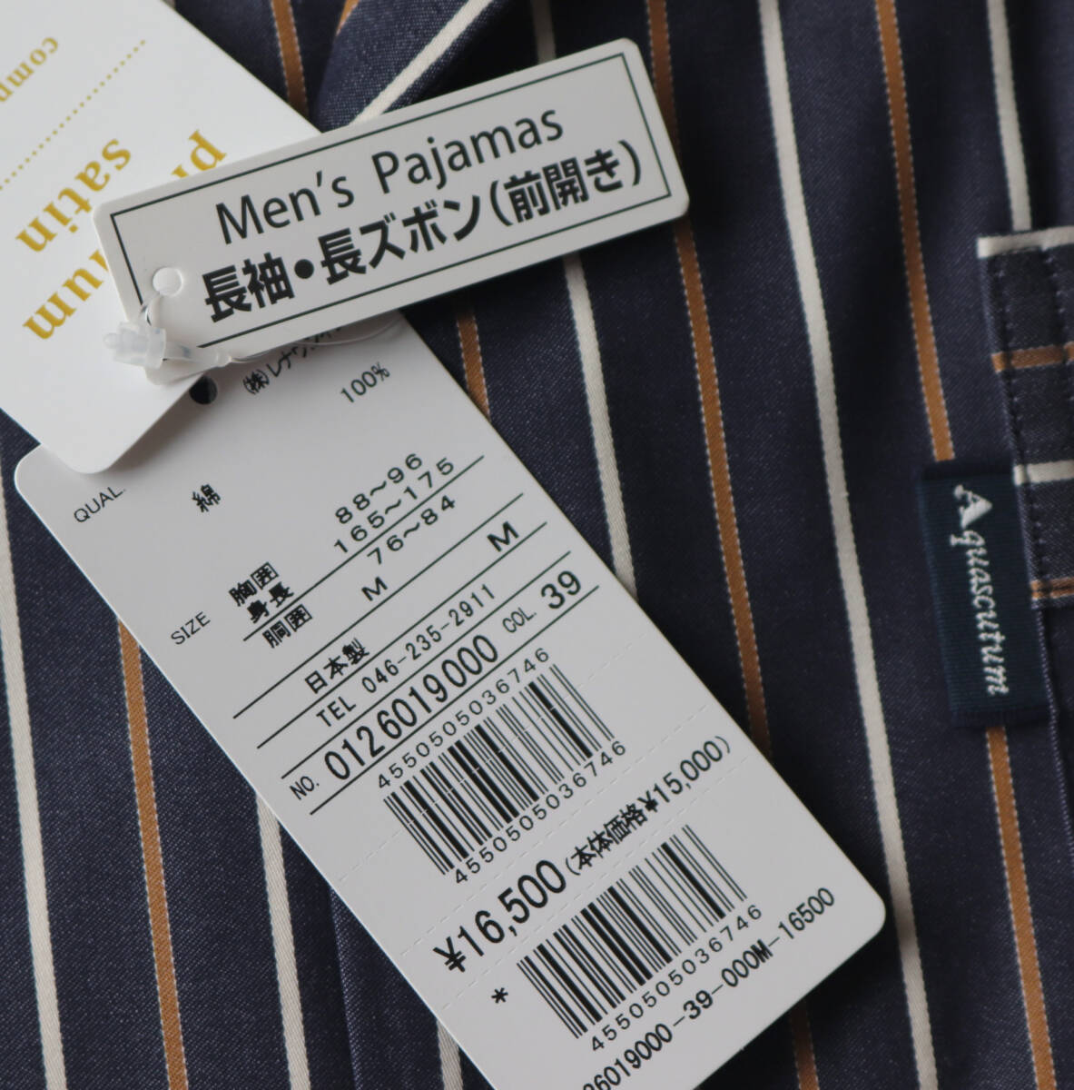 16,500円新品タグ付き【アクアスキュータム】プレミアムサテン生地 長袖 長ズボン パジャマ M v7623 |