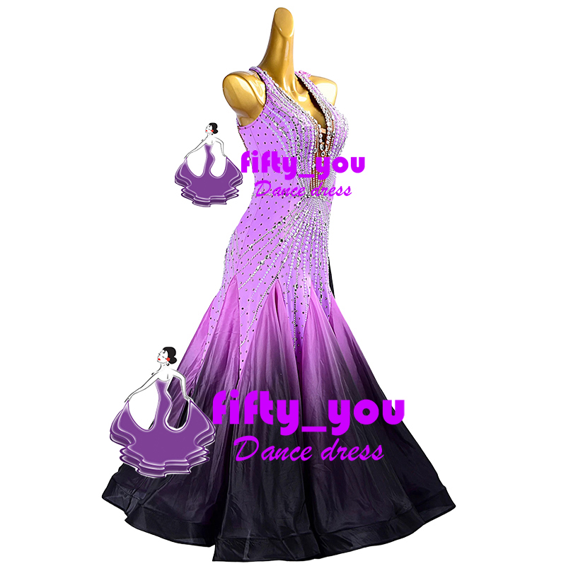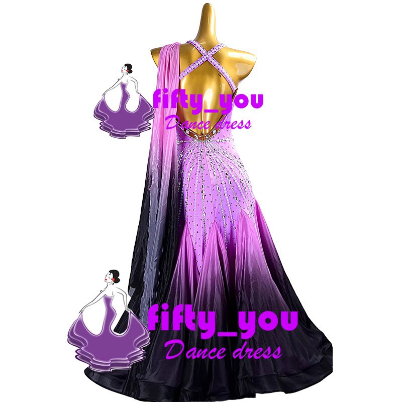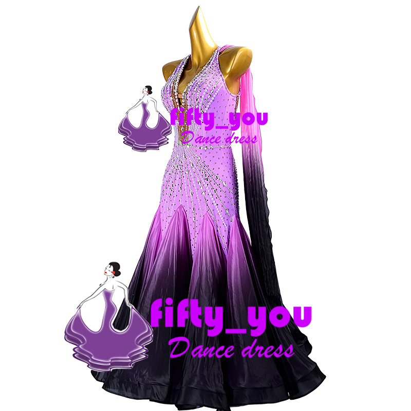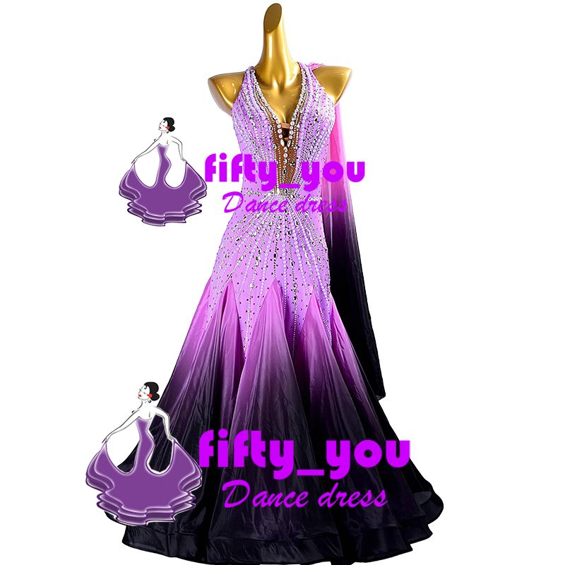 新品fifty_youレディース社交ダンス衣装 競技会用ドレス セミオーダー  モダン・ワルツ素敵スタンダードドレス 紫黒のグラテーション