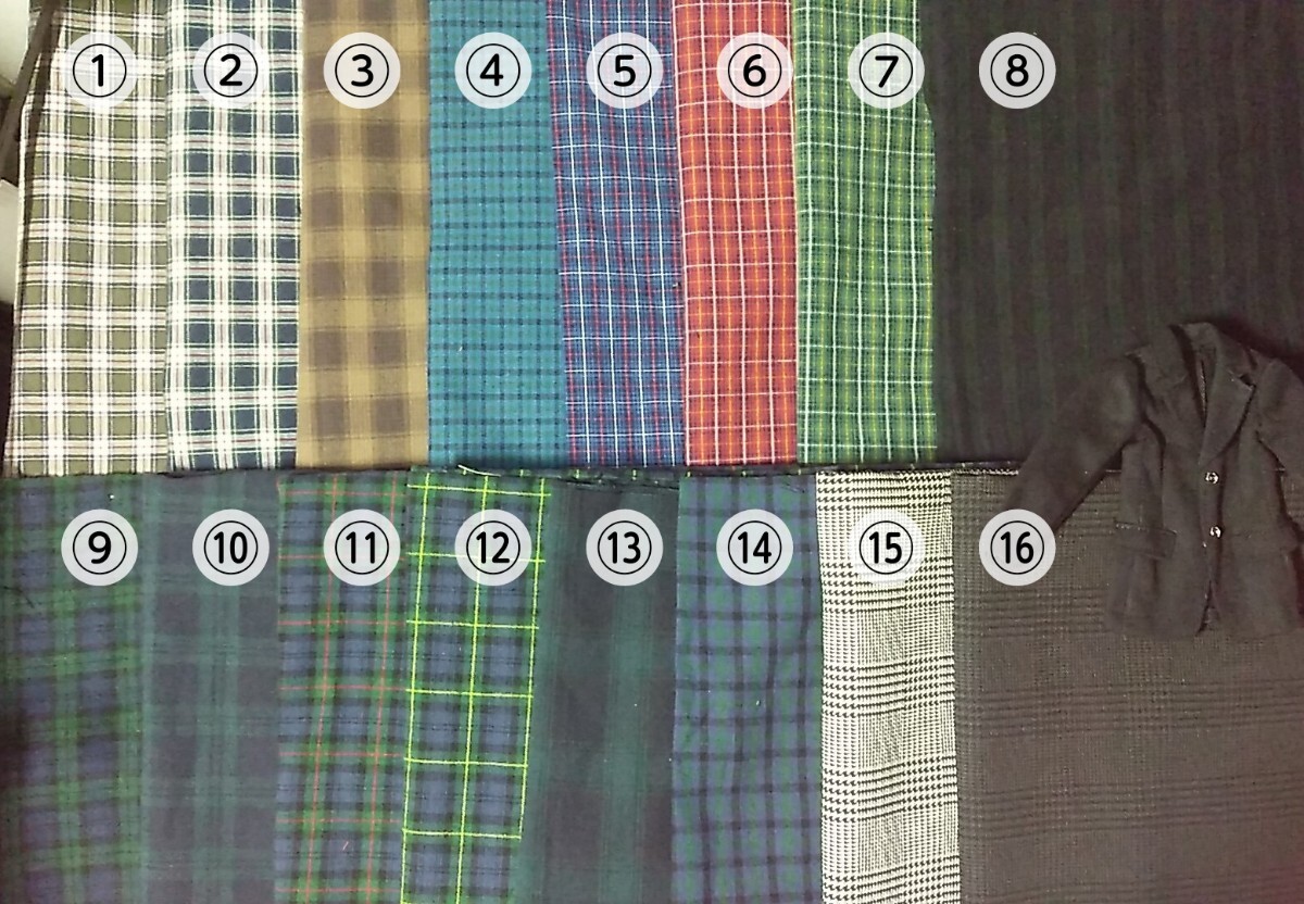 チェック生地ですが、メーカー廃盤につき、いくつか入れ換えました。
