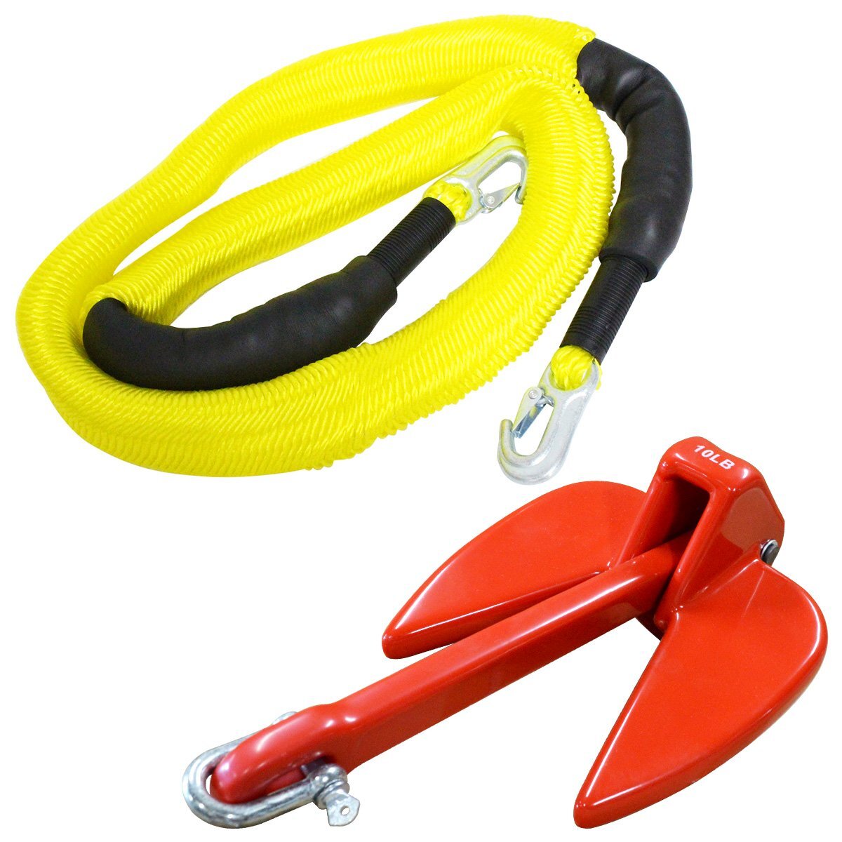 【新品即納】『伸縮ロープ/アンカーセット』爪型 アンカー 10LBS 4.5kg 赤 レッド 6M フロート のびのび アンカー ロープ 黄色