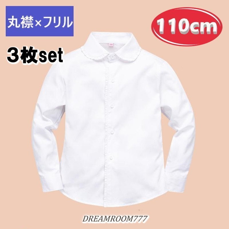 お得な3枚set★綿100% 丸襟×フリル ブラウス【110cm】ワイシャツ 白シャツ 学生服 フォーマル 冠婚葬祭 制服