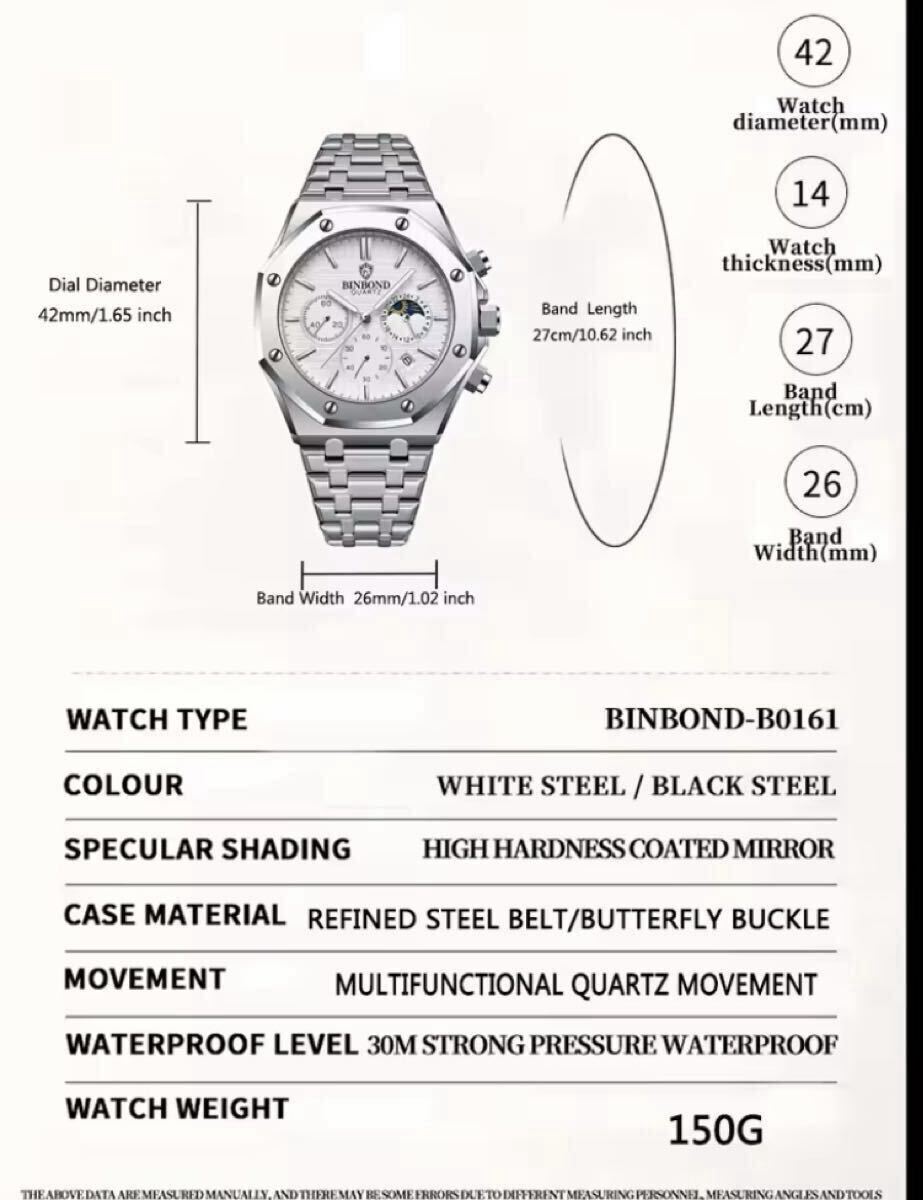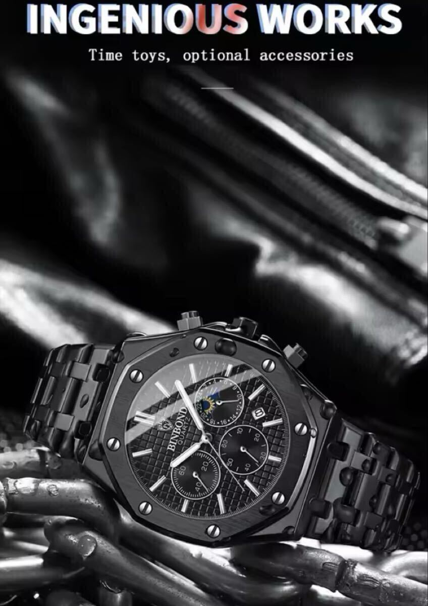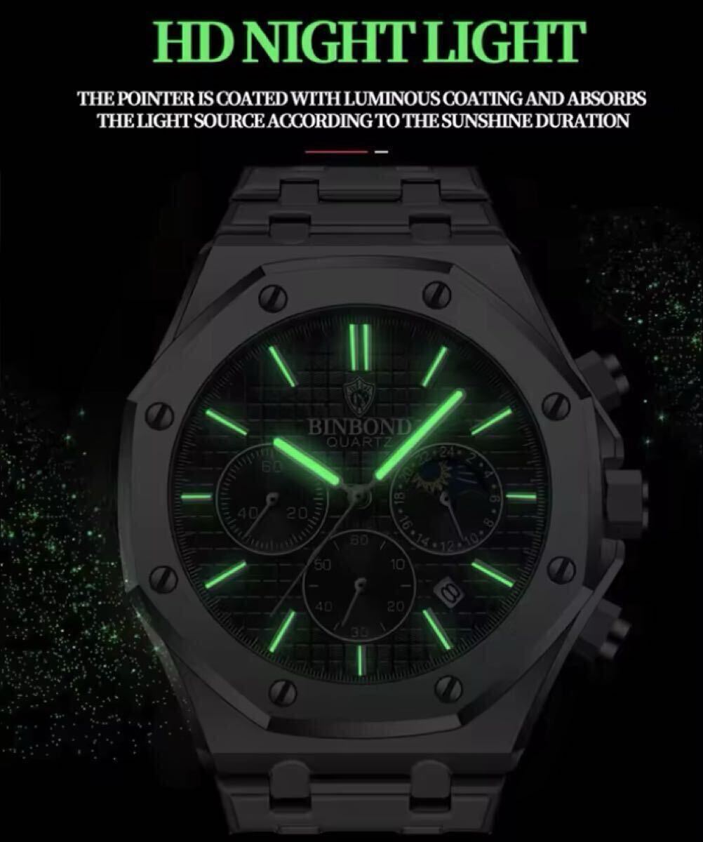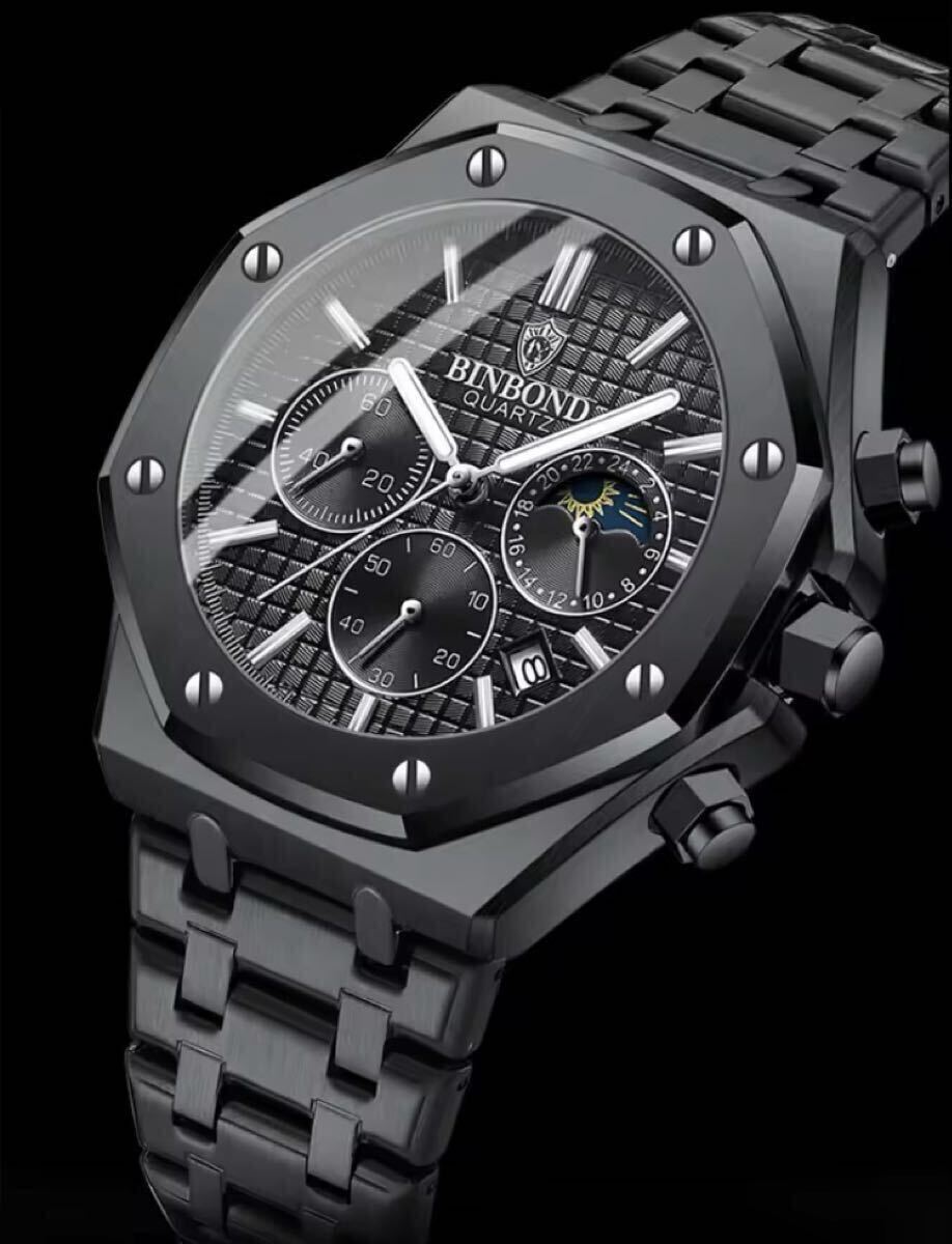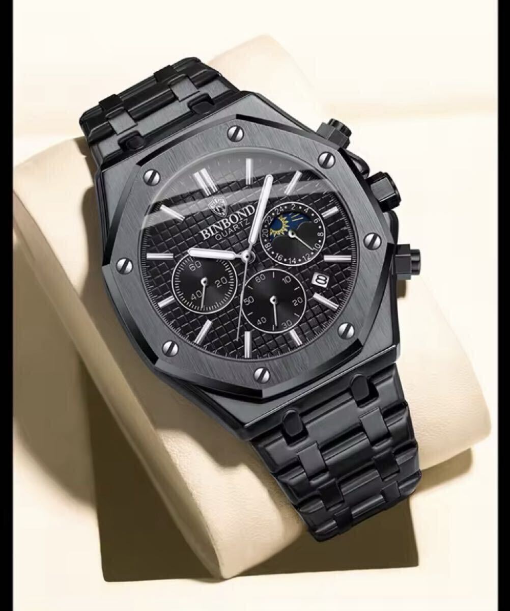 メンズカジュアルスポーツウォッチ ステンレススチール 防水 クロノグラフ トップブランド ビジネスブレスレット 2025年モデル