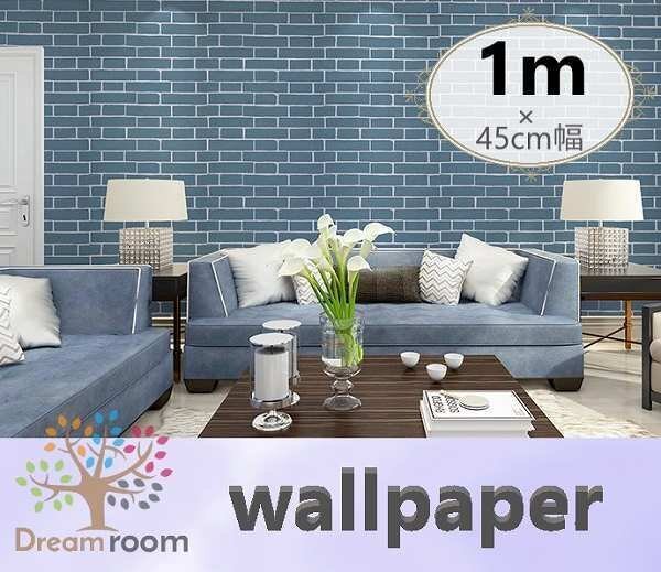 少量パック【 1m 】 3D レンガ ウォール ペーパー ビンテージ ブルー 石垣 ストーン 壁紙 糊付き 北欧風 インテリア はがせる シール DIY