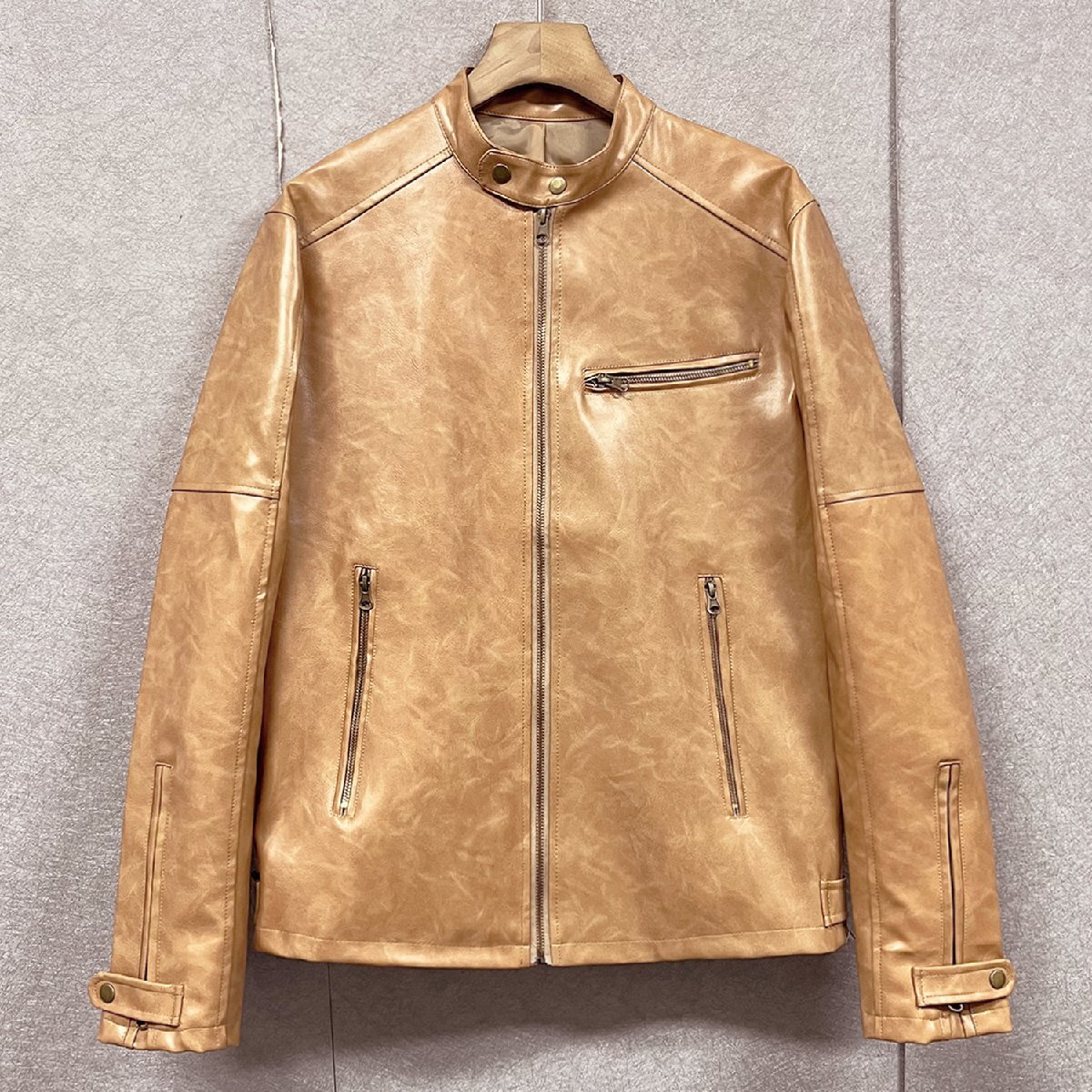レザージャケット イタリア製造 個性 上質 撥水 滑らか 無地 コート アウター ライダース オートバイ バイク用 メンズ 街着 SIZE:L
