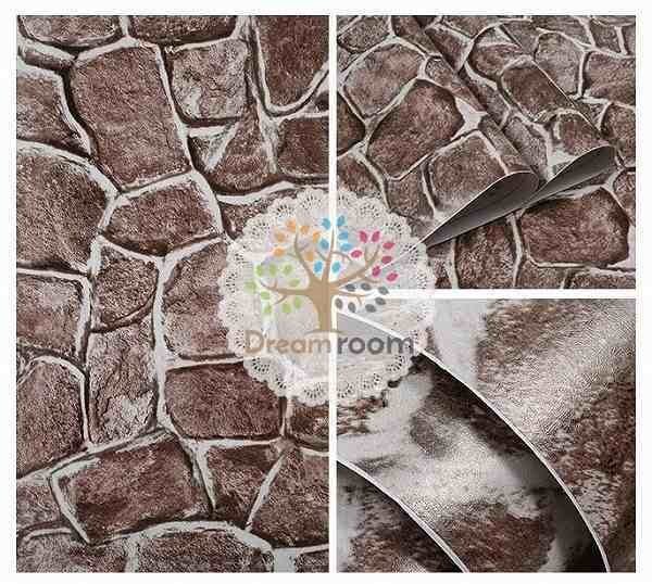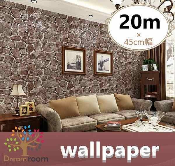 【 20m 】 3D レンガ ビンテージ ブラウン 石垣 ストーン ウォール ペーパー 壁紙 ブルックリン インテリア はがせる シール DIY