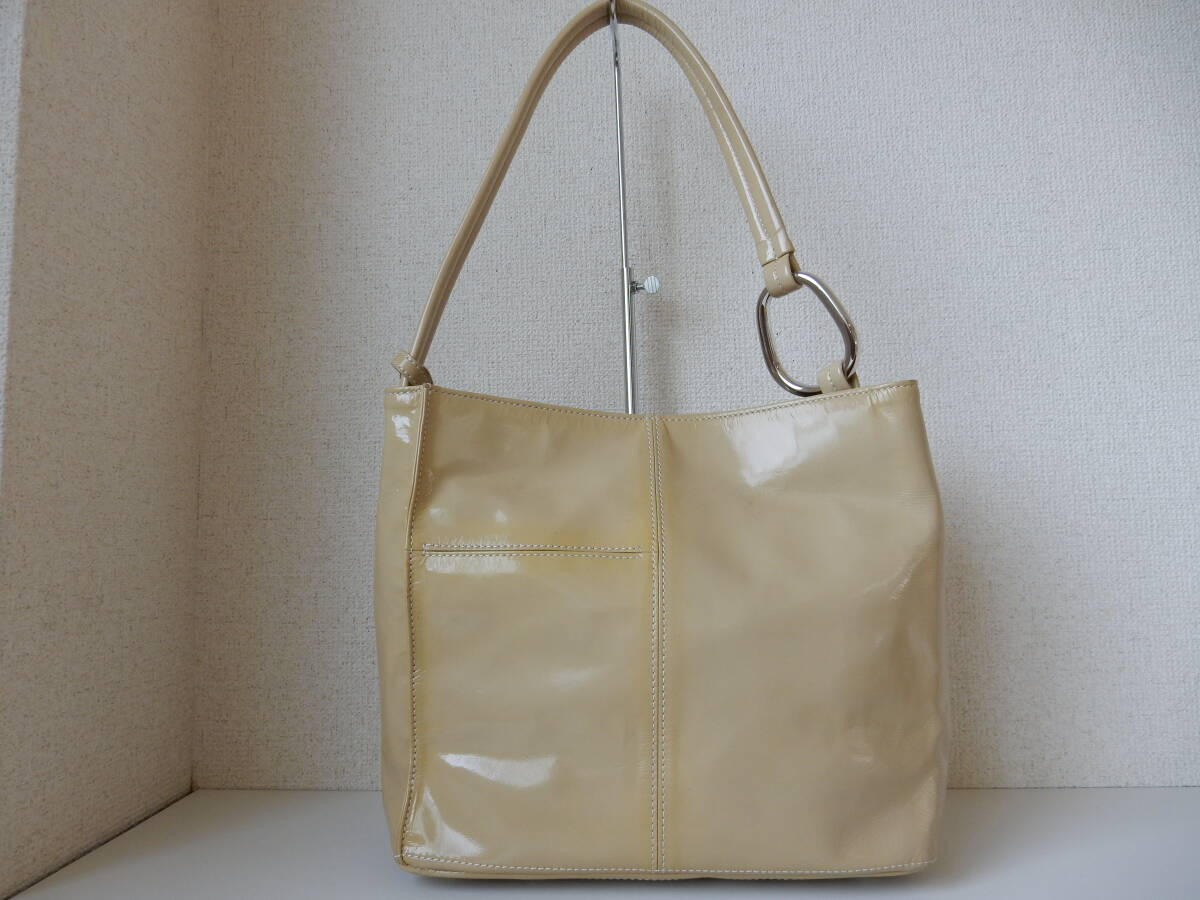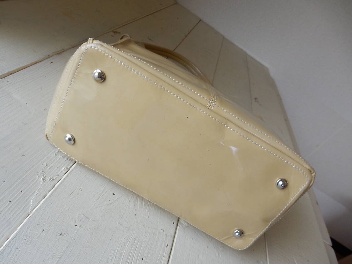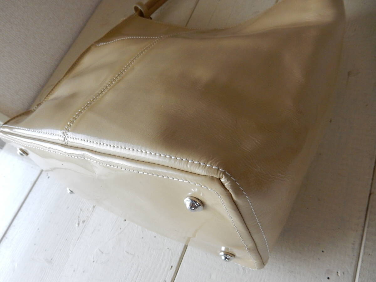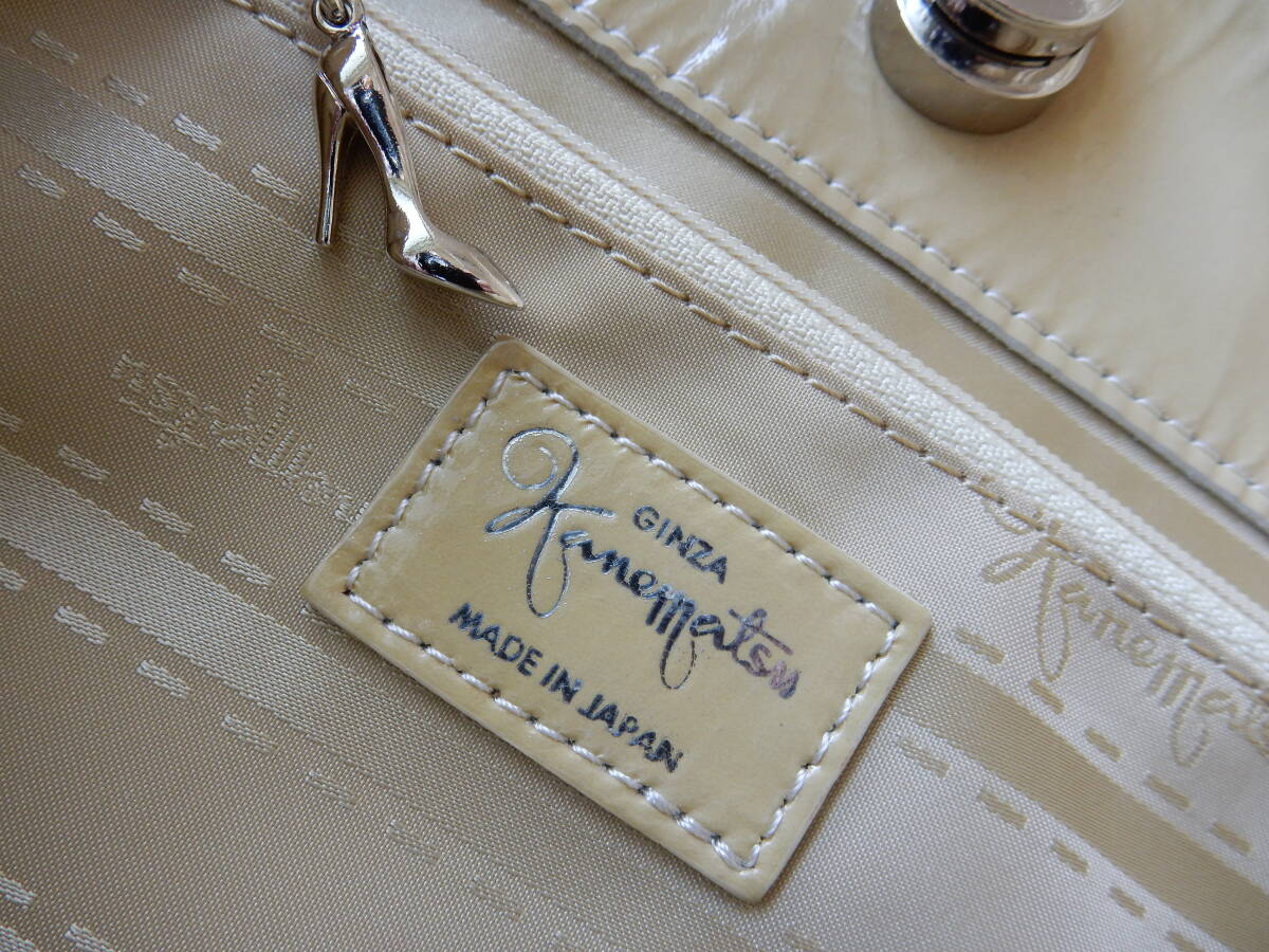 日本製☆GINZA Kanematsu(銀座かねまつ)☆B5対応☆エナメルショルダーバッグ クリーム(金具シルバー)