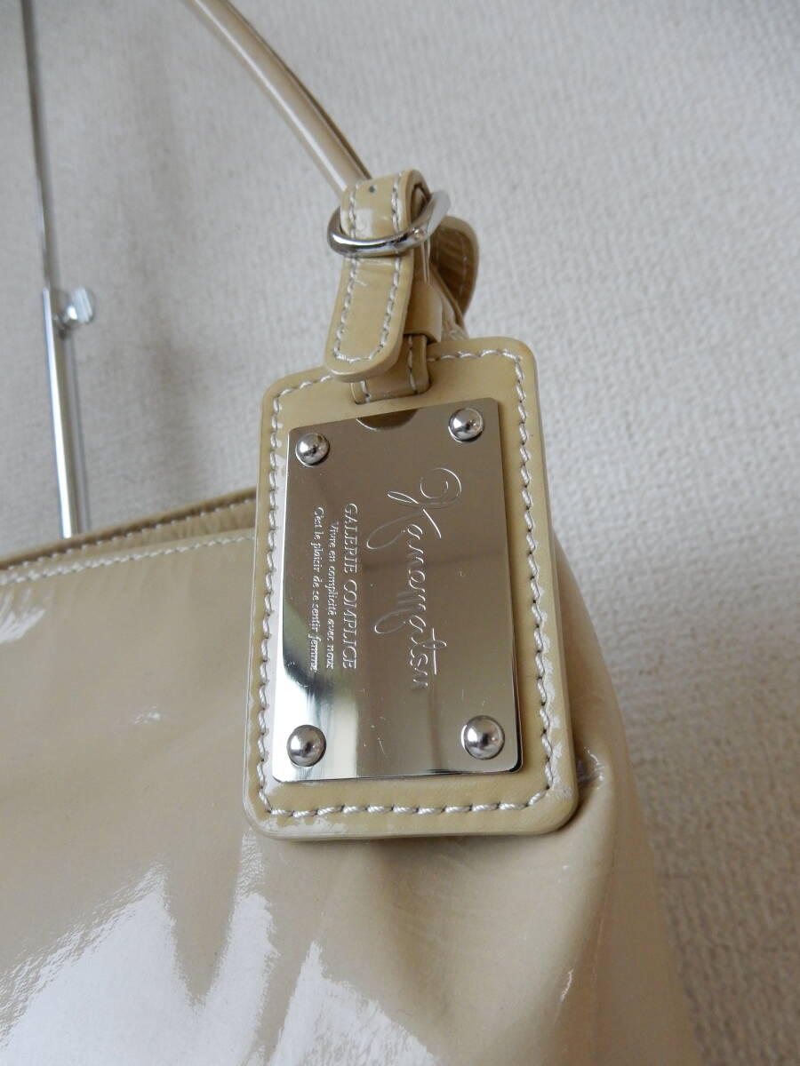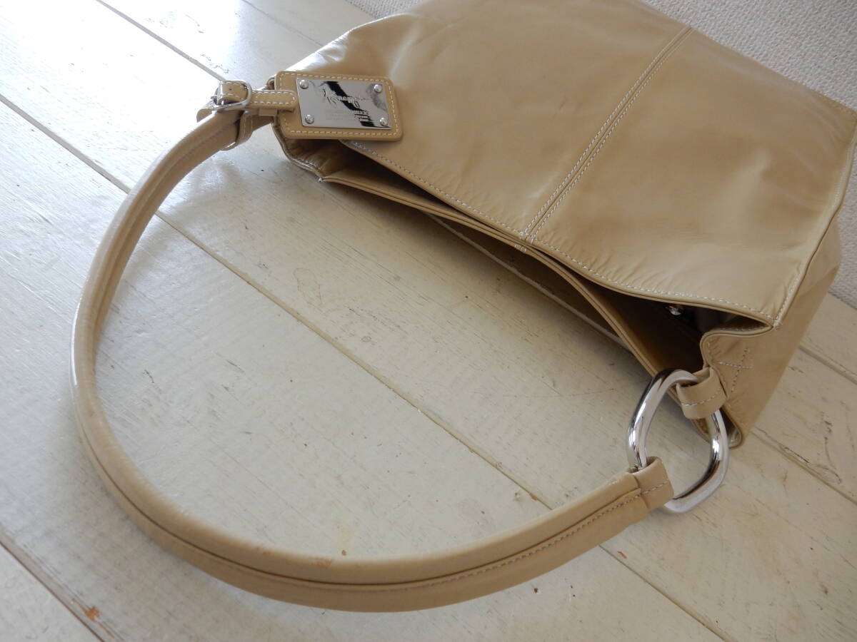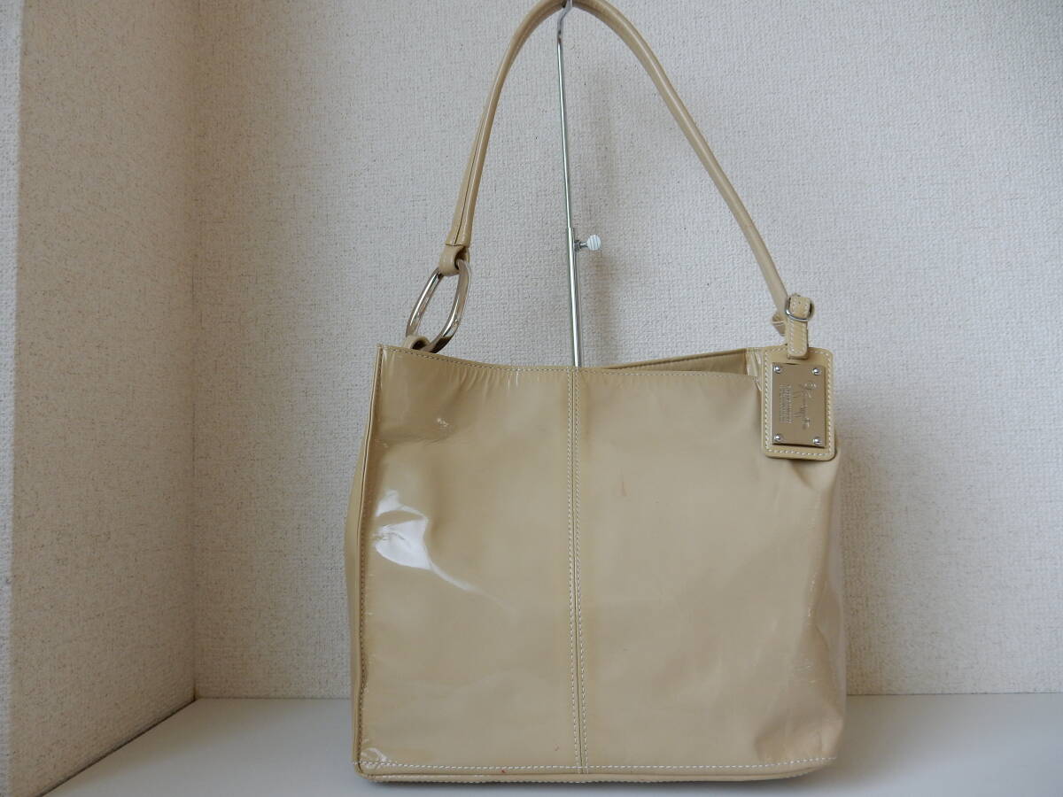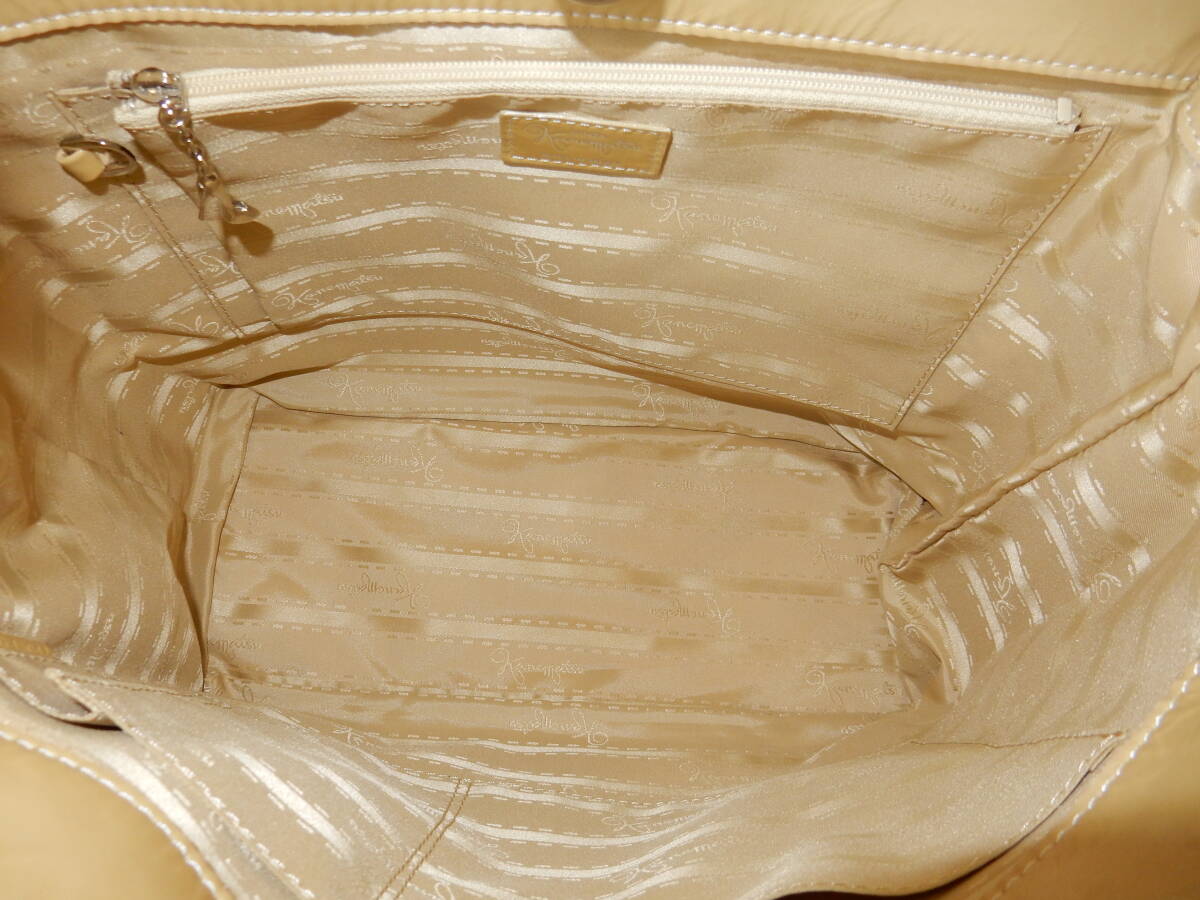 日本製☆GINZA Kanematsu(銀座かねまつ)☆B5対応☆エナメルショルダーバッグ クリーム(金具シルバー)