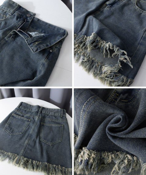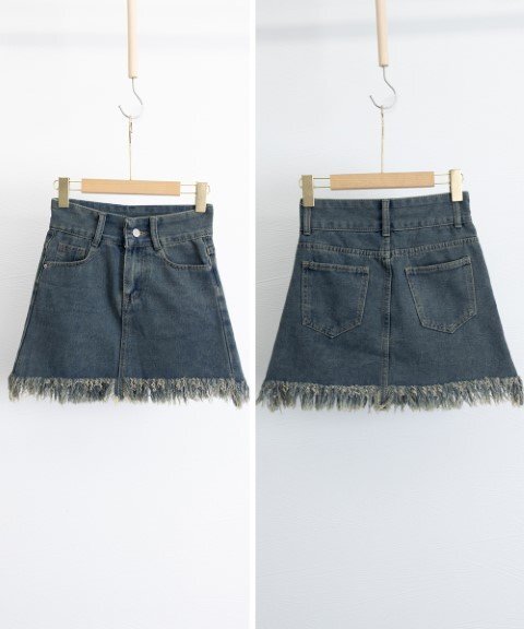 台形のベーシックなシルエットが幅広いコーデにマッチするデニムミニスカートです。
