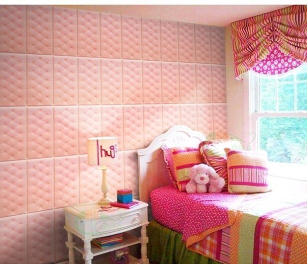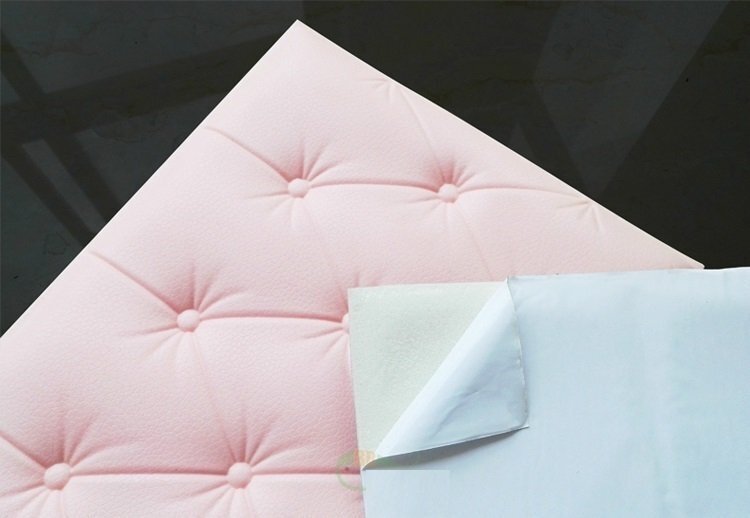 【30枚】極厚2cm高級 3D クッション 壁 シール キルティングレザー調×ピンク 糊付き リメイク 70×77cm 耐水 抗菌 傷防止