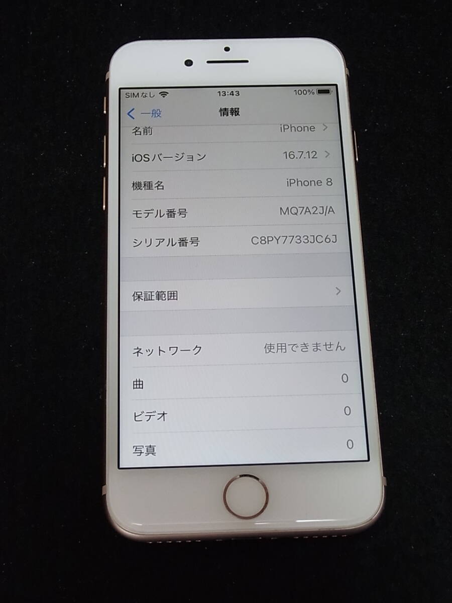 P985 美品 SIMフリー iPhone8 64GB ゴールド 569